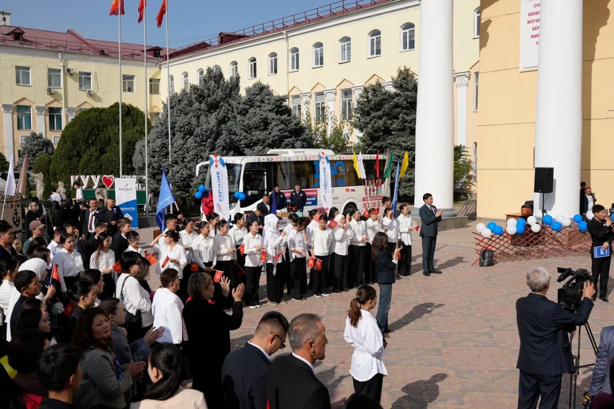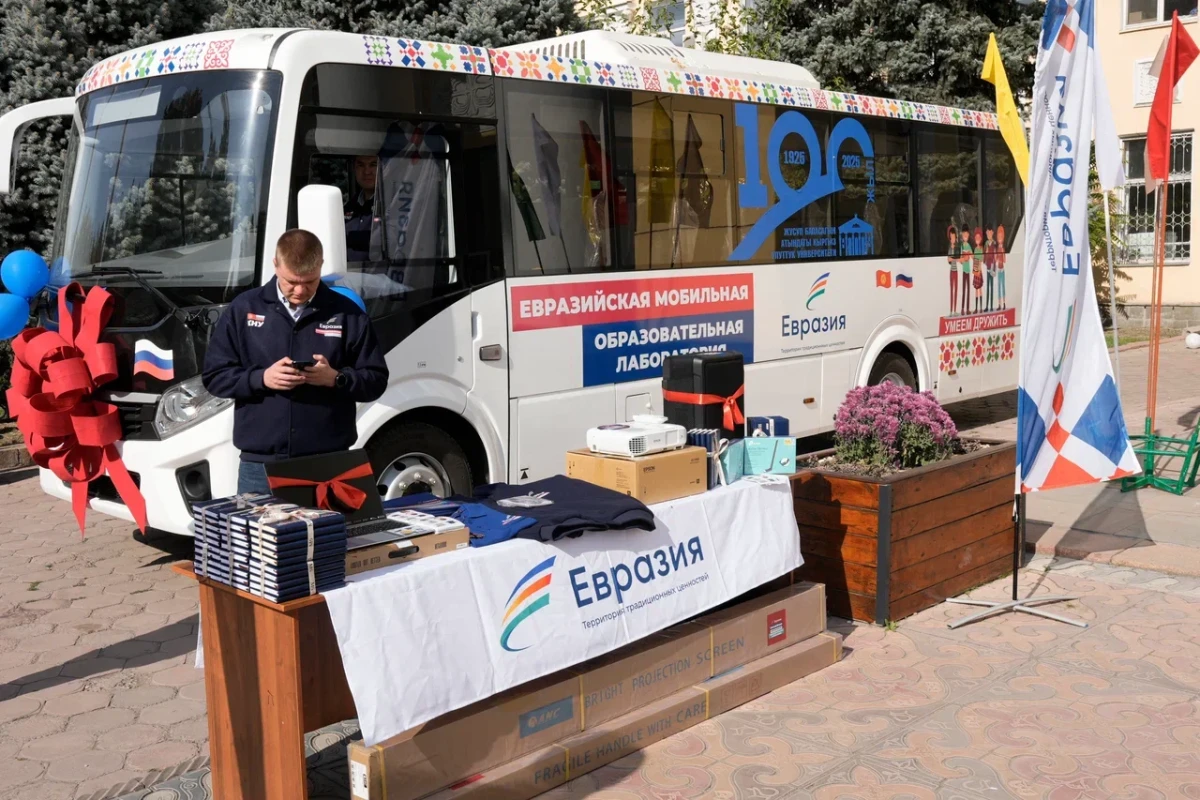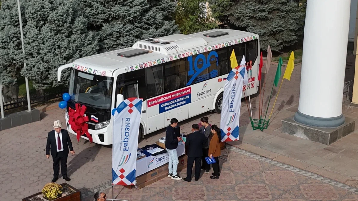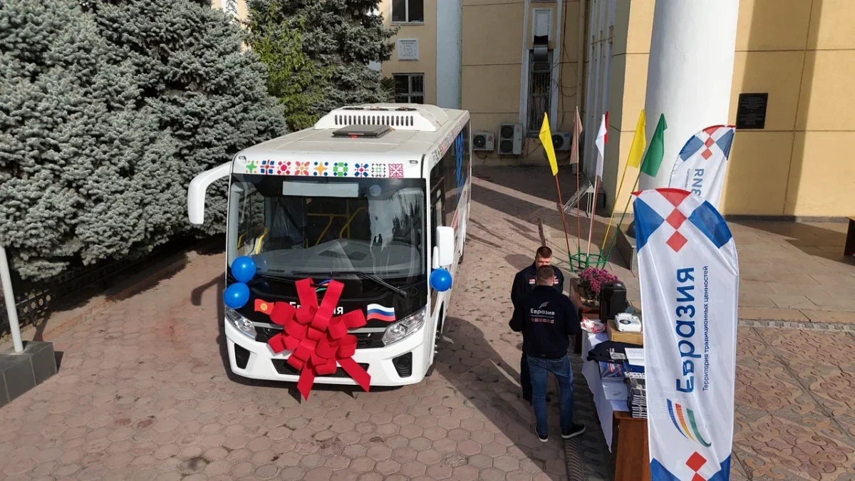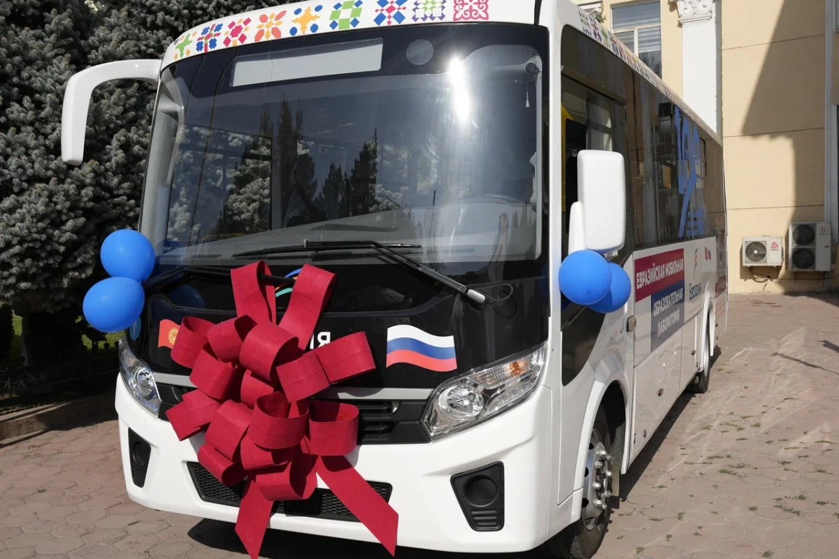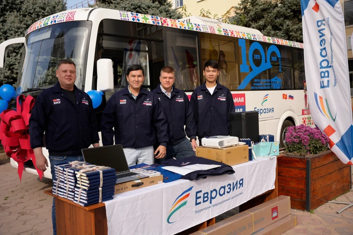 «Евразия» автономдуу коммерциялык эмес уюму Кыргыз улуттук университетинин 100 жылдык мааракесине карата университетке заманбап автобус белек кылды.