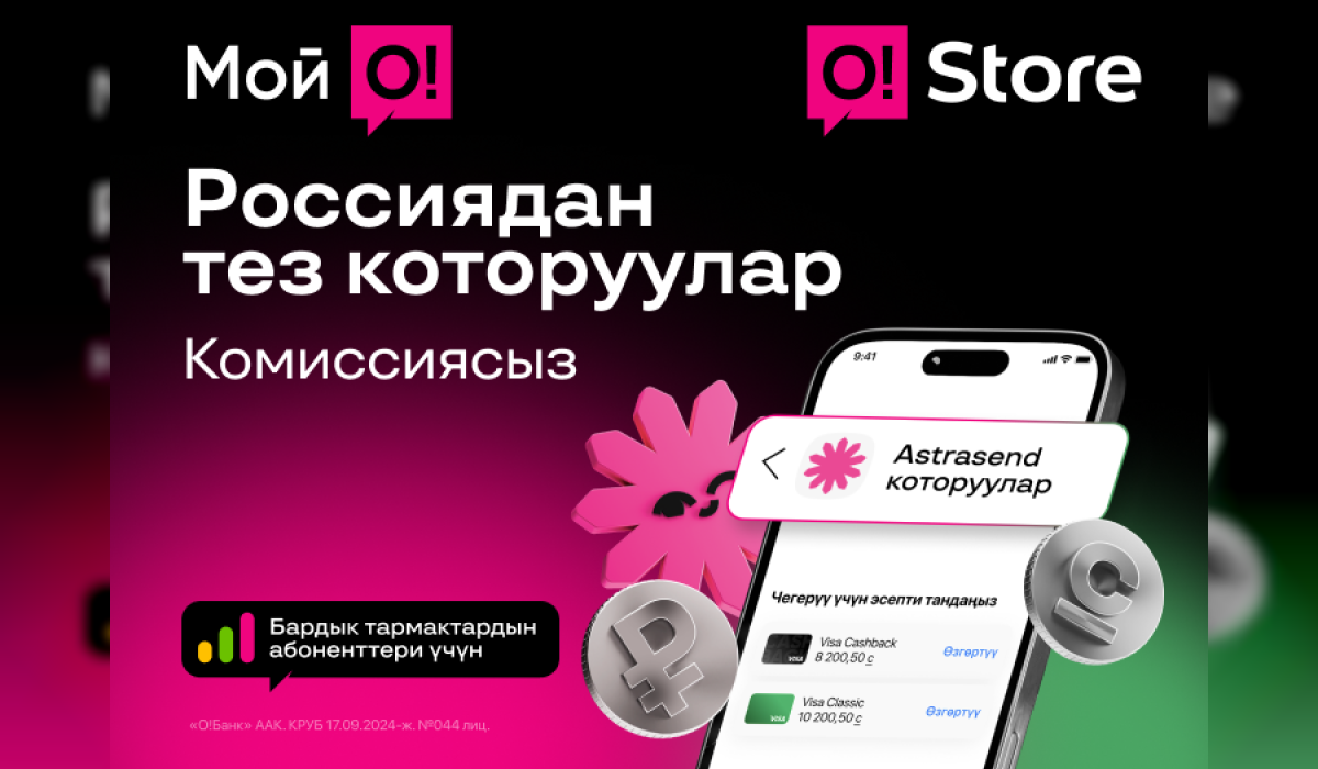 O!Bank Россиядан Кыргызстанга Astrasend сервиси аркылуу тез которууларды алуу мүмкүнчүлүгүн ишке киргизди.
