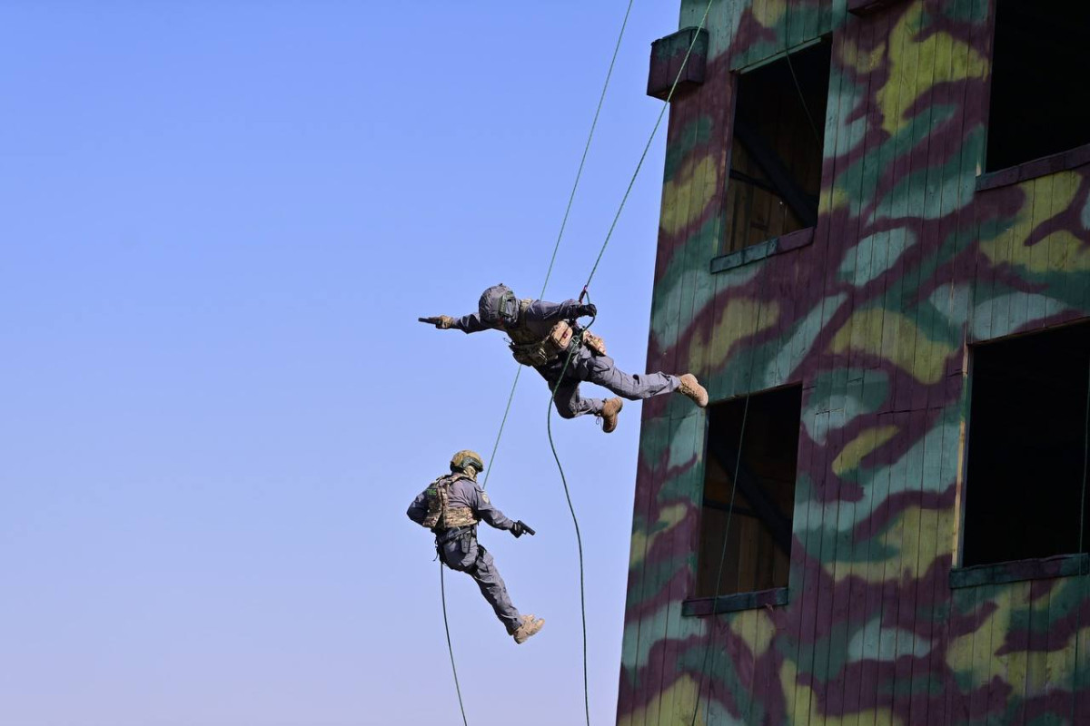 Президент "Альфа" жоокерлеринин шарттуу террористтерди жок кылуу жана барымтадагыларды бошотуу көнүгүүлөрү боюнча тактикалык машыгууларын да көрдү.