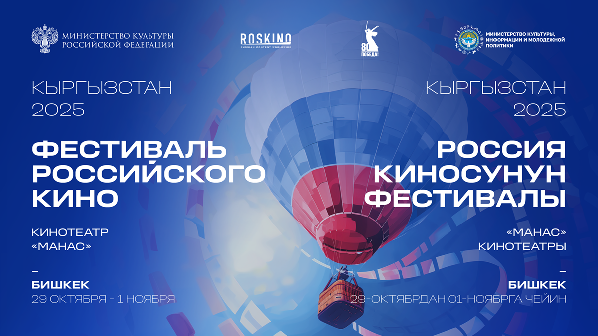 29-октябрдан 1-ноябрга чейин Бишкектеги “Манас” кинотеатрында Россиянын Маданият министрлигинин колдоосу менен РОСКИНО тарабынан уюштурулган “Кыргызстан-2025 Россия киносунун фестивалы” өтөт.