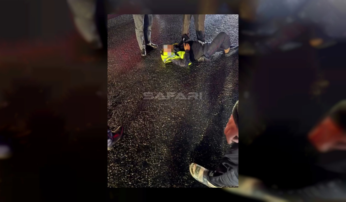 Кызматкерлердин бири жол тыгындарын алдын алып жаткан учурда КИА-К7 үлгүгүсүндөгү унаа жол тескөөчүнү сүзүп кеткен.