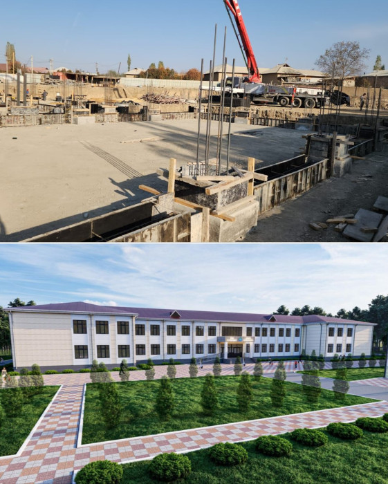Башкы план боюнча, аянты 2479,8 чарчы метр болгон мектеп беш блоктон турат. Курулуш иштери заманбап үлгүдө жүргүзүлүп эки кабаттуу окуу корпусу спорт залы менен курулат. Азыркы тапта имараттын пайдубалы куюлду.
