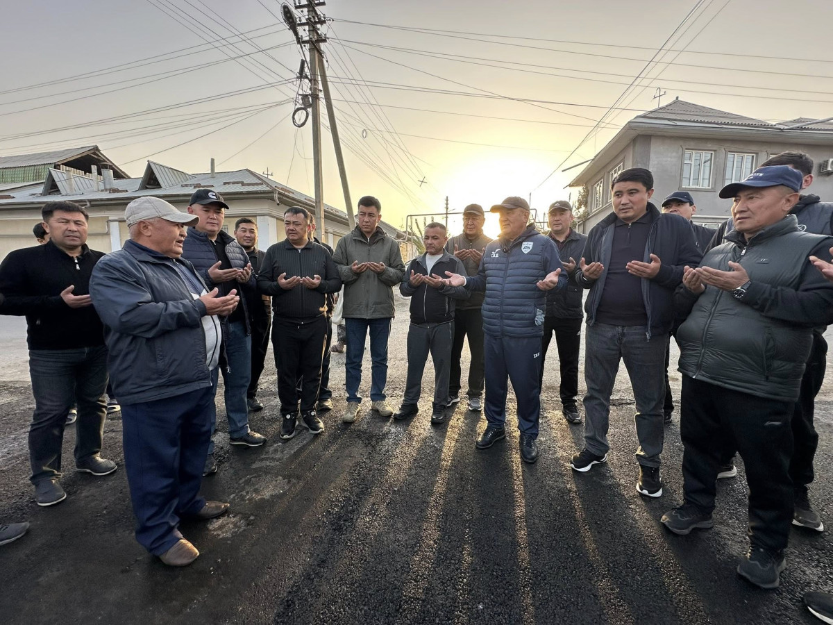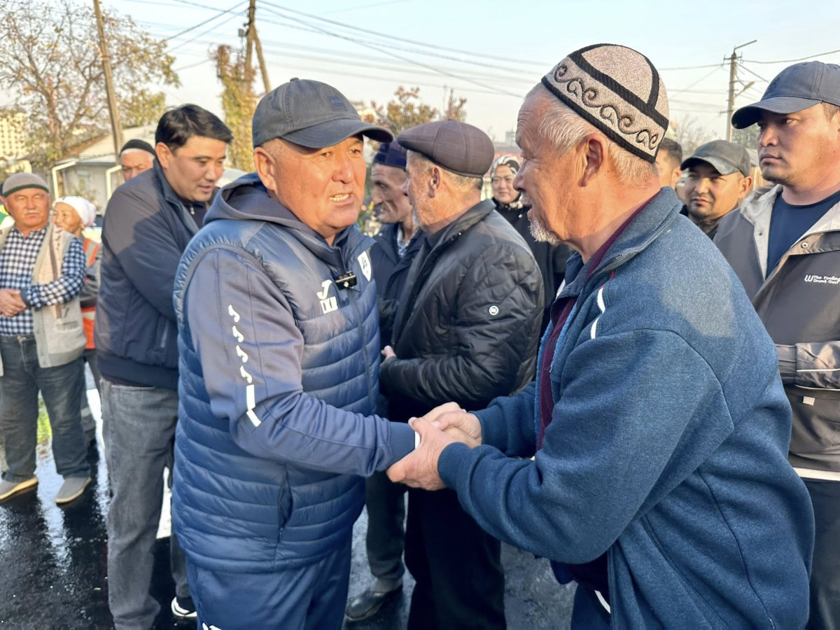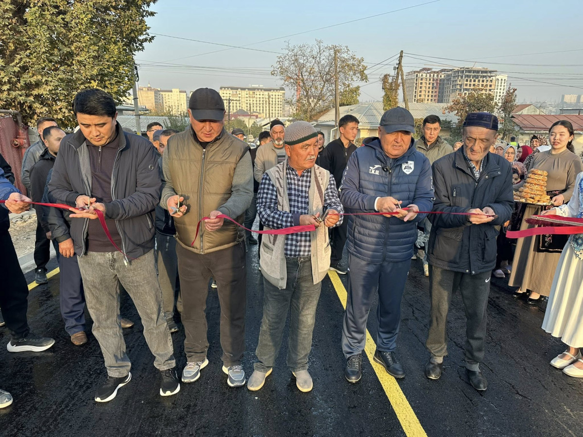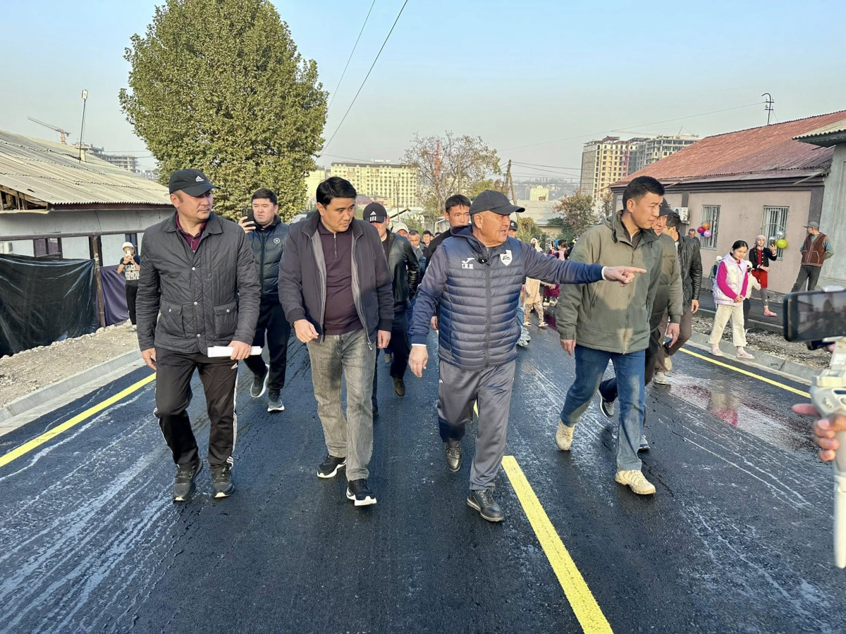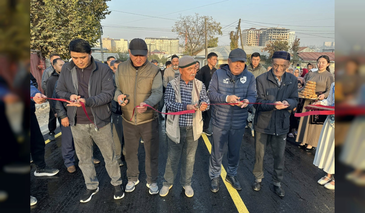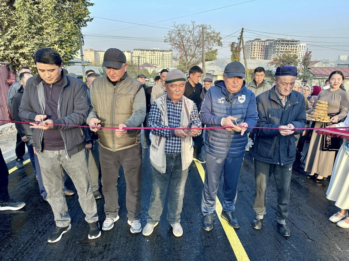 Мэр Жеңишбек Токторбаев, шаардык кеңештин төрагасы Болот Баетов жана шаардыктардын катышуусунда жол ачылды.