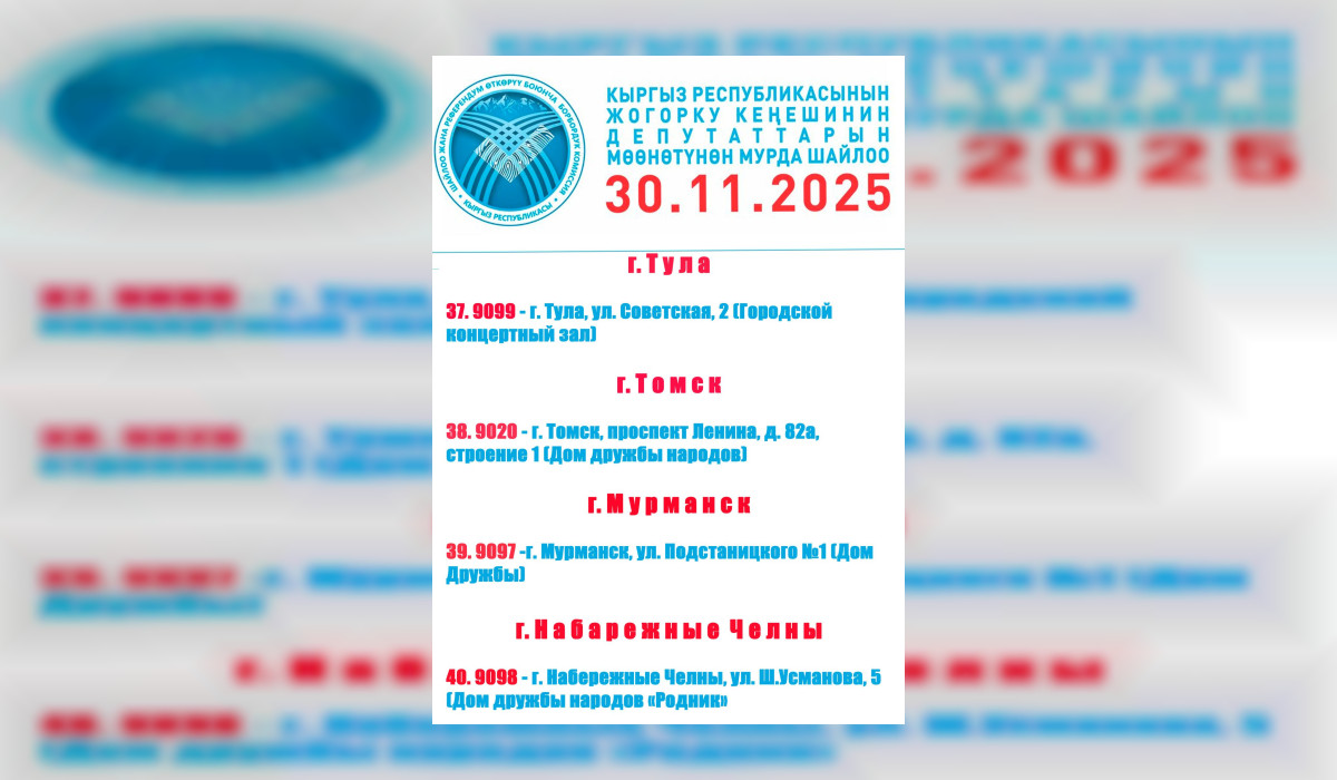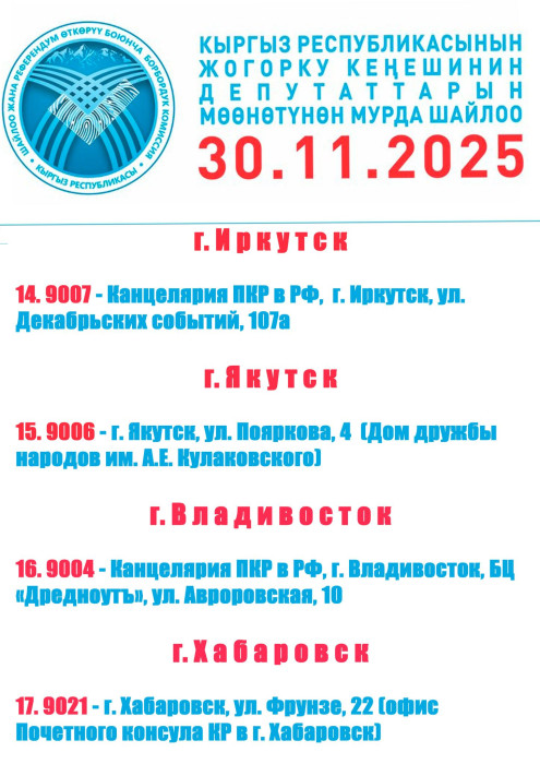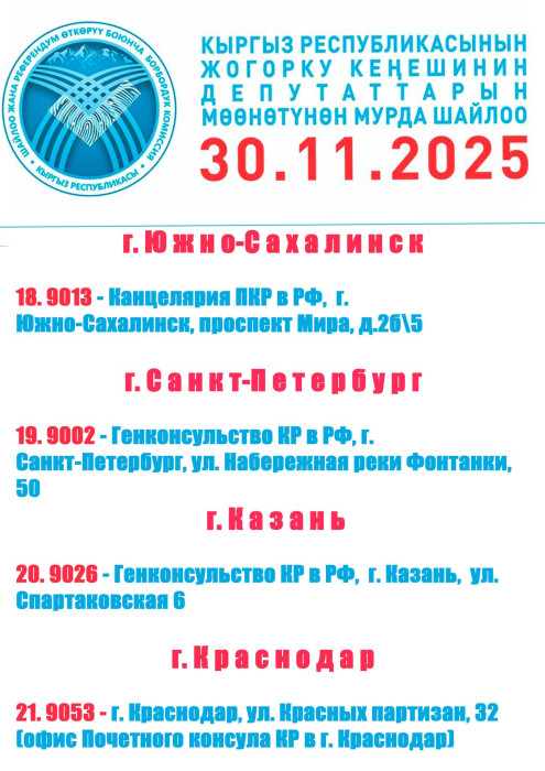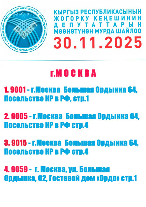 Кыргызстандын Орусиядагы элчилиги миграцияда жүргөн кыргызстандыктарды шайлоого жигердүү катышууга чакырат.