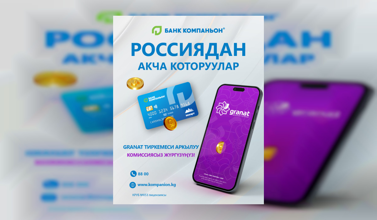 Россиядан Компаньон Банкынын "Элкарт" карталарына Granat аркылуу комиссиясыз заматта которууларды алыңыз.