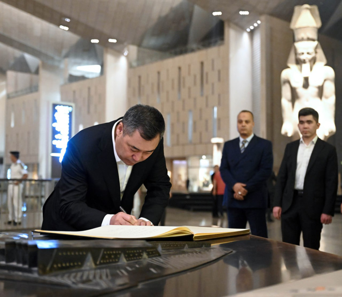 Соңунда Садыр Жапаров музейдин ардактуу коноктор китебине жазуу калтырып, мисир тарапка жылуу кабыл алуу жана улуу цивилизациянын тарыхы менен жакындан таанышууга мүмкүнчүлүк бергендиги үчүн ыраазычылык билдирди", - деп айтылат маалыматта.