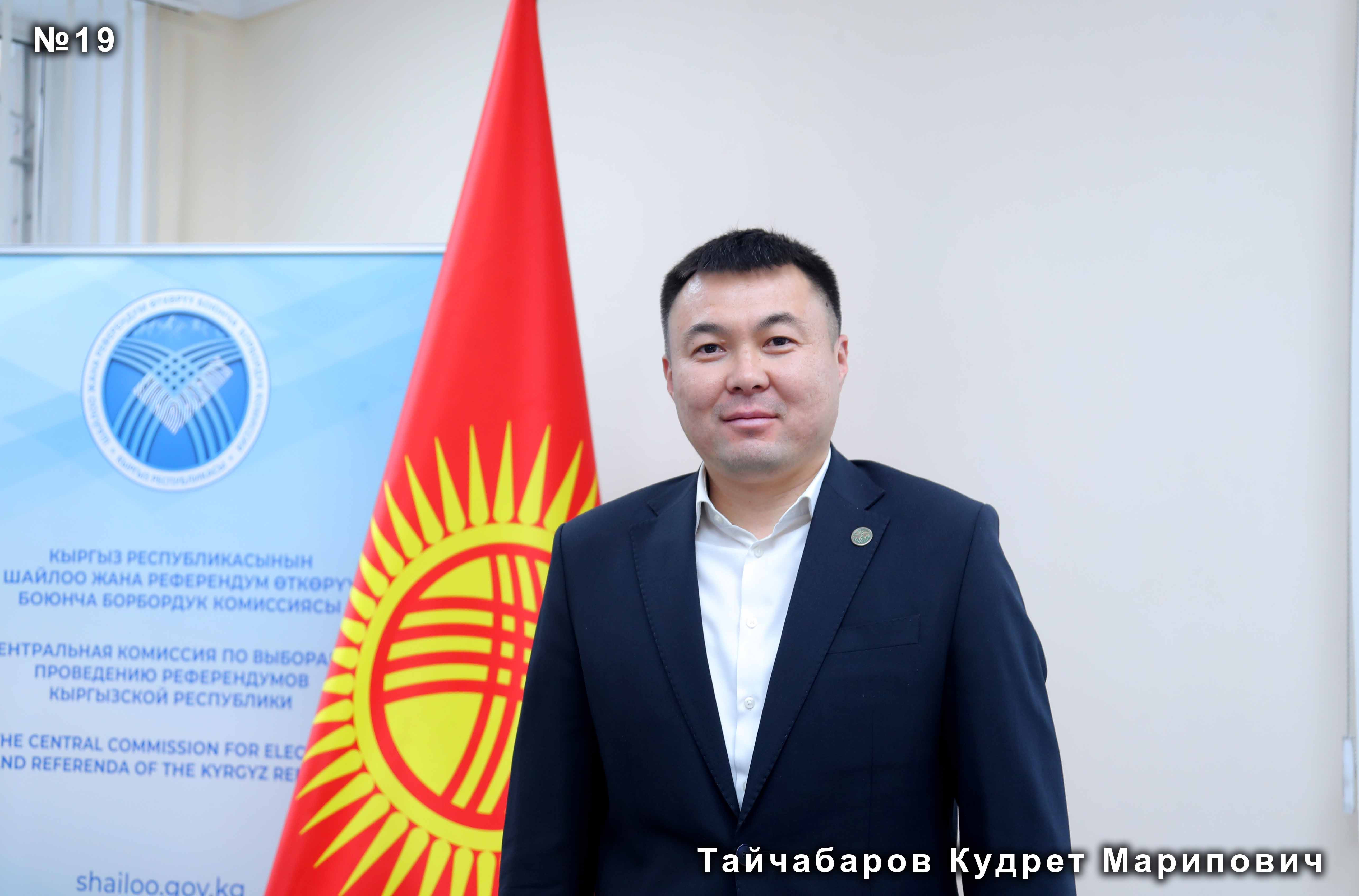 Борбордук шайлоо комиссиясы Жогорку Кеңештин депутаттыгына көп мандаттуу №19 шайлоо округу боюнча өзүн-өзү талапкер катары көрсөткөн Кудрет Тайчабаровду каттоодон баш тартуу чечимин кабыл алды.