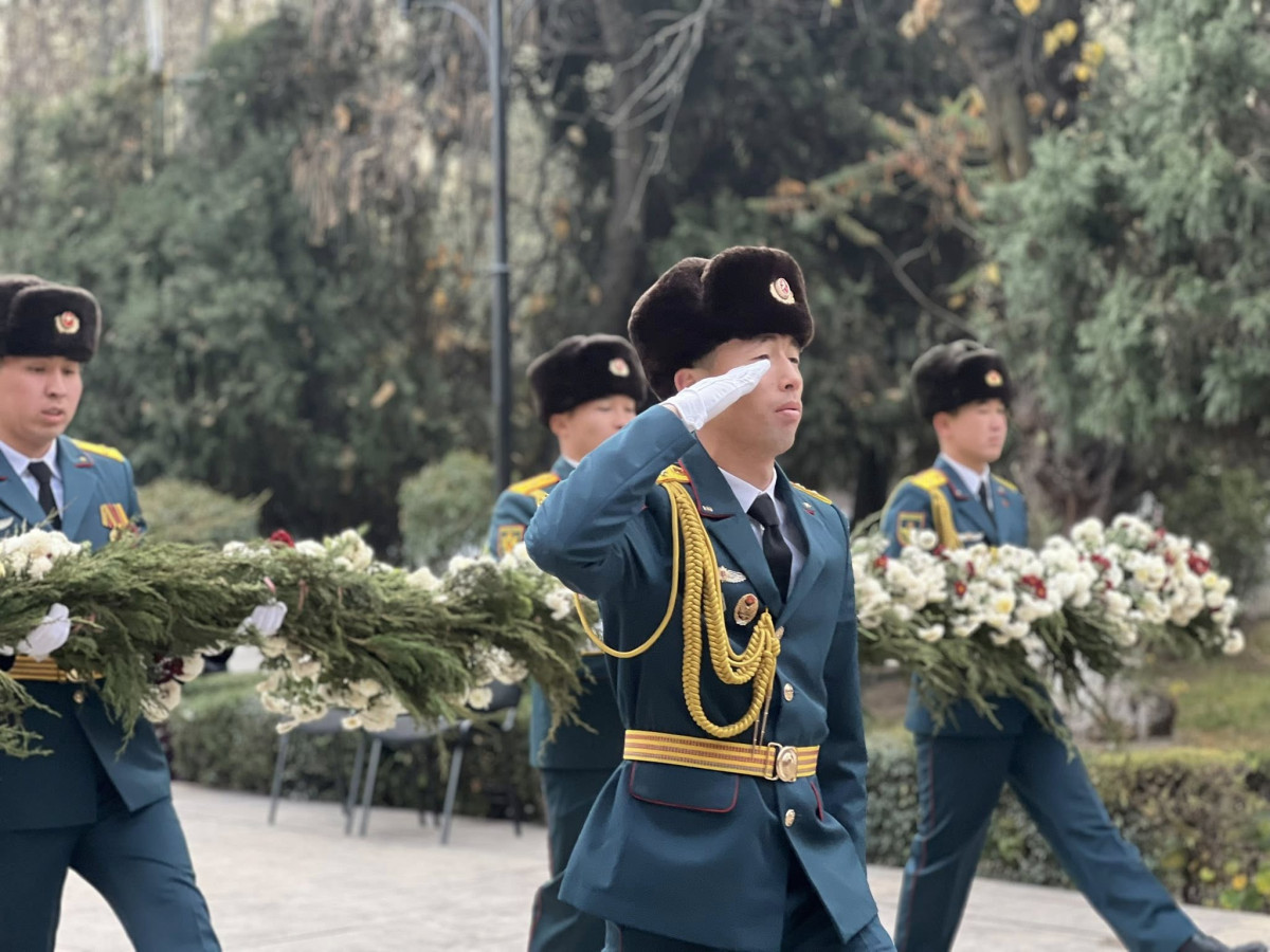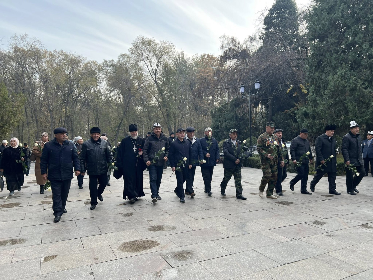 Катышуучулар "Өчпөс от" мемориалдык комплексине гүл коюп, ата-бабаларды бир мүнөт унчукпай туруу менен эскеришти. Бүгүнкү күнгө карата Ош шаарындагы көзү өткөн мамлекеттик ишмерлердин эстеликтерине гүл коюп, эскерүү иш-чаралары өтүп жатат.