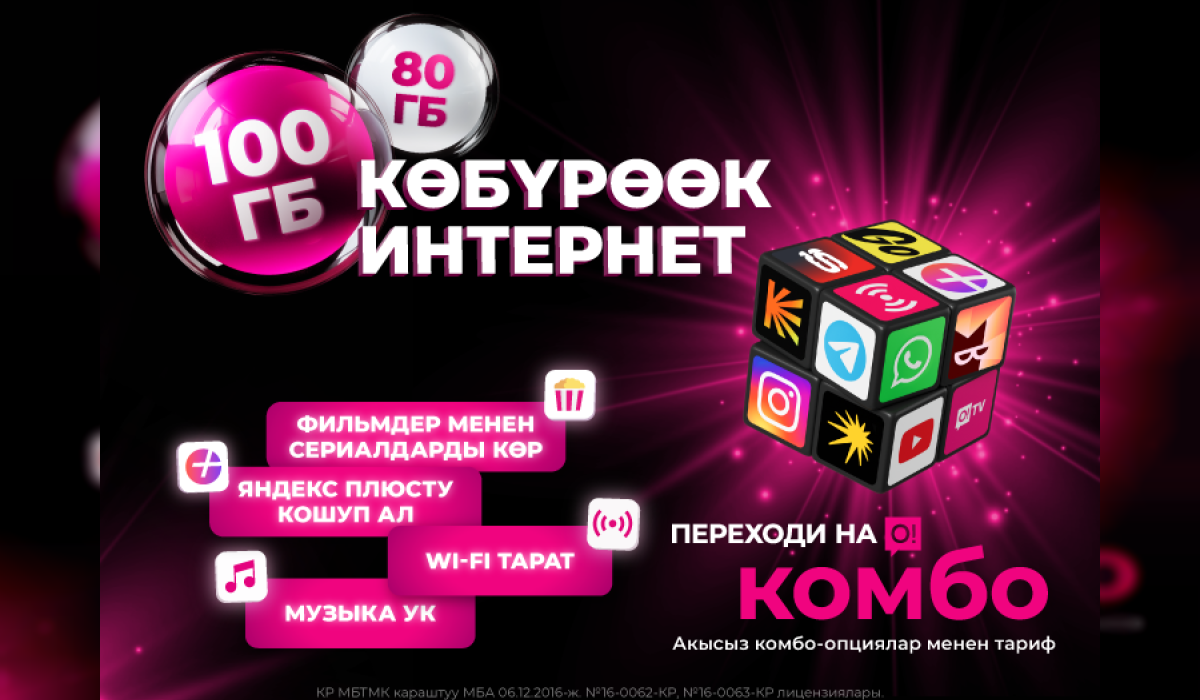 «Переходи на О! Комбо»: эми 80 ГБ жана 100 ГБ интернет + премиум-номер белекке