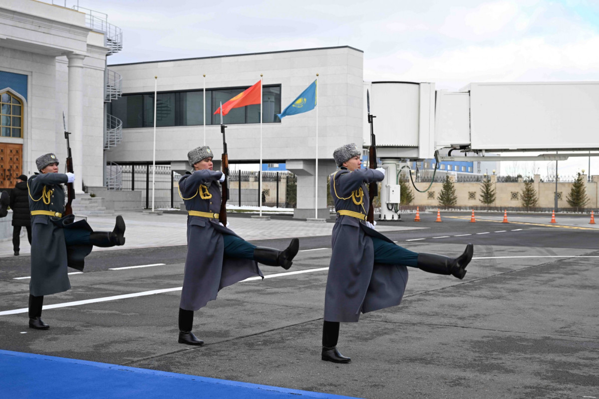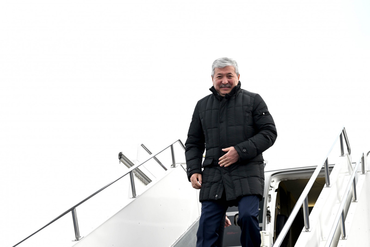 Министрлер кабинетинин төрагасынын учагы “Нурсултан Назарбаев” эл аралык аэропортуна конду. Аны Казакстандын премьер-министри Олжас Бектенов жана башка расмий адамдар тосуп алышты.
