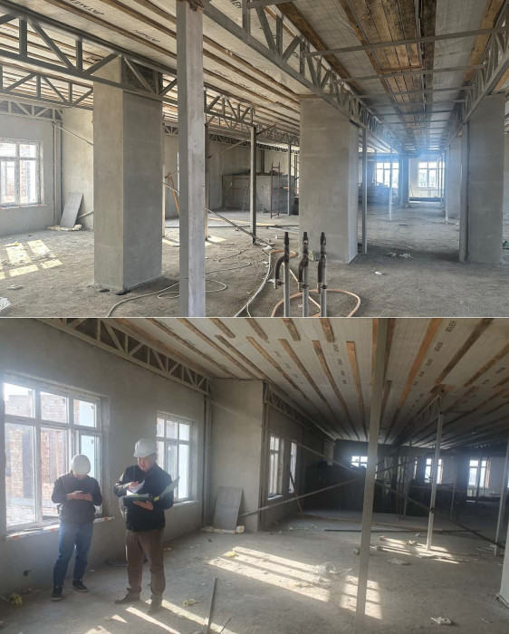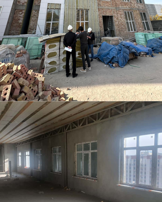 Курулуш объекттерин текшерүүдө Бишкек шаарынын Токмок көчөсү 45, 47 жана Загорская көчөсү 22, 24 дарегинде курулуп жаткан 9 кабаттуу турак үйдө курулуш нормаларынын бузулгандыгы жана долбоордон сырткары иш жүргүзүлгөндүгү аныкталды.