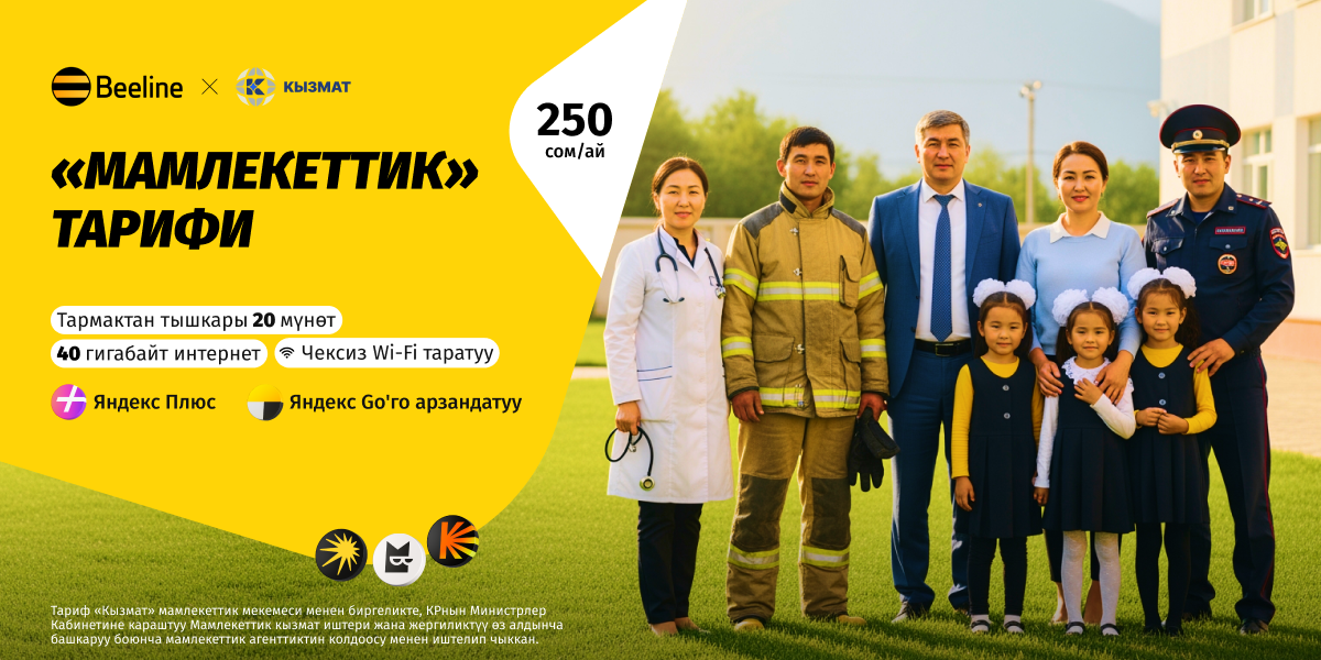 Beeline Кыргызстан мамлекеттик мобилдик оператору Кыргыз Республикасынын Министрлер Кабинетине караштуу Мамлекеттик кызмат жана жергиликтүү өз алдынча башкаруу иштери боюнча мамлекеттик агенттиктин колдоосу менен «Кызмат» мамлекеттик мекемеси менен биргеликте иштелип чыккан «Мамлекеттик» жаңы тарифин ишке киргизди. Ал элге кызмат кылгандарга өзгөчө көңүл буруу жана чексиз урматтоо менен — мамлекеттик жана муниципалдык кызматкерлер үчүн түзүлгөн.