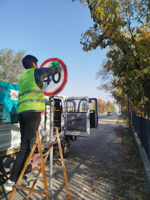 Жогоруда айтылган жол белгилери “Өндүрүштүк-инновациялык борбор” мамлекеттик мекемесинин алдында ачылган устаканада даярдалып жатат.