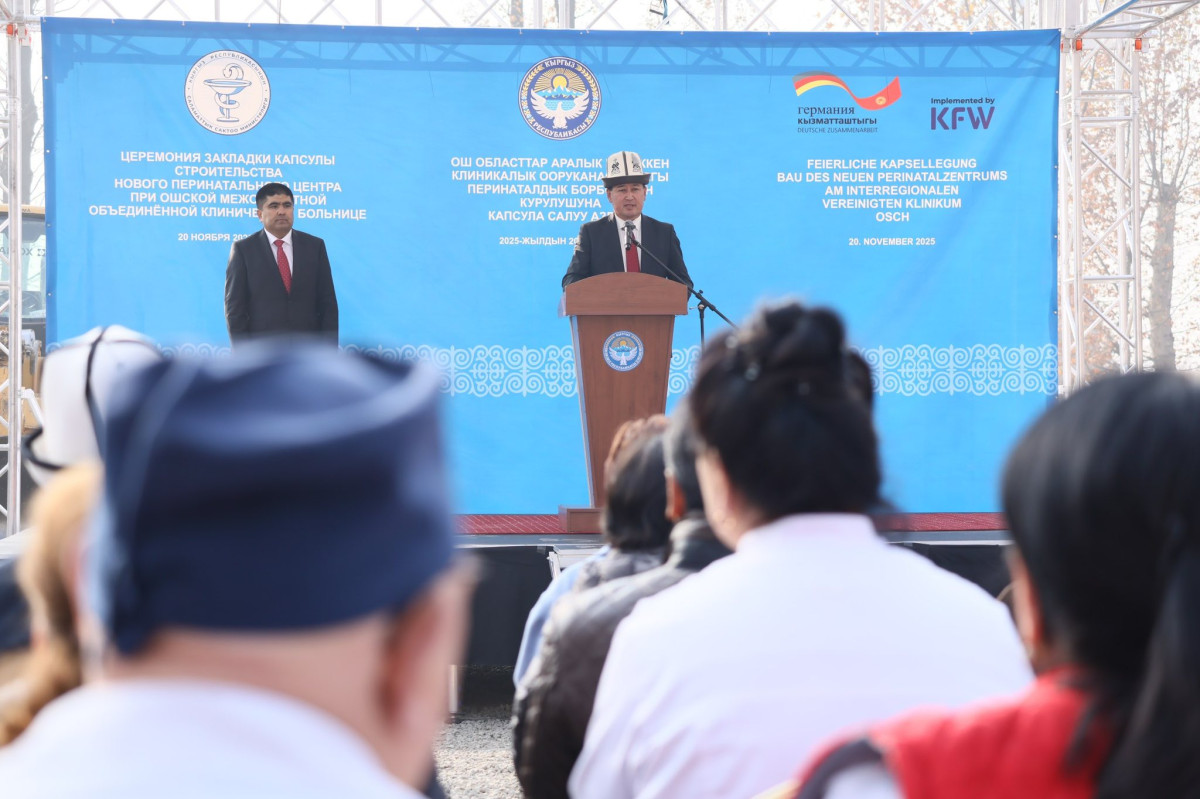 Бүгүн, 20-ноябрда Ош облустар аралык бириккен клиникалык ооруканасынын аймагында курула турган жаңы перинаталдык борбордун пайдубалына мезгил капсуласын салуу аземи өттү. Бул тууралуу облустук өкүлчүлүктөн билдиришти.