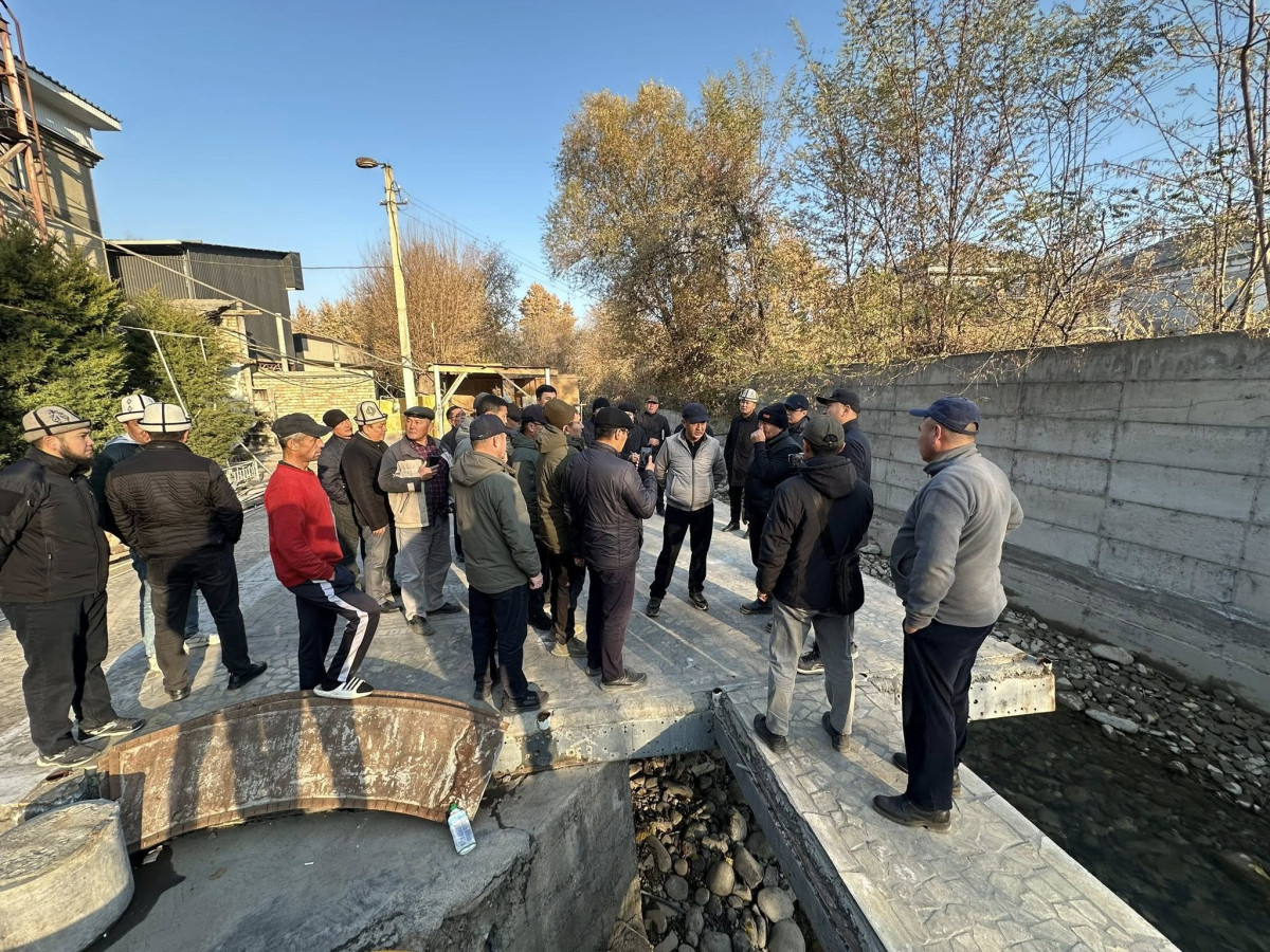 Көчмө жыйындын жүрүшүндө Кыр-Арык (Увам) каналынын корук аймактарындагы мыйзамсыз курулуштар боюнча мурда берилген тапшырмаларынын аткарылышын жеринен текшерди.