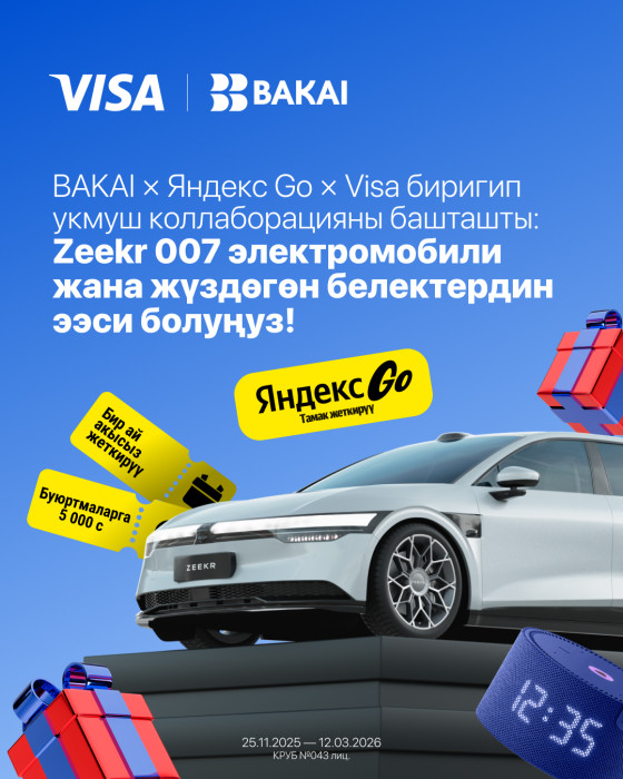 BAKAI × Яндекс Go × Visa биригип укмуш коллаборацияны башташты: Zeekr 007 электромобили жана жүздөгөн белектердин ээси болуңуз!