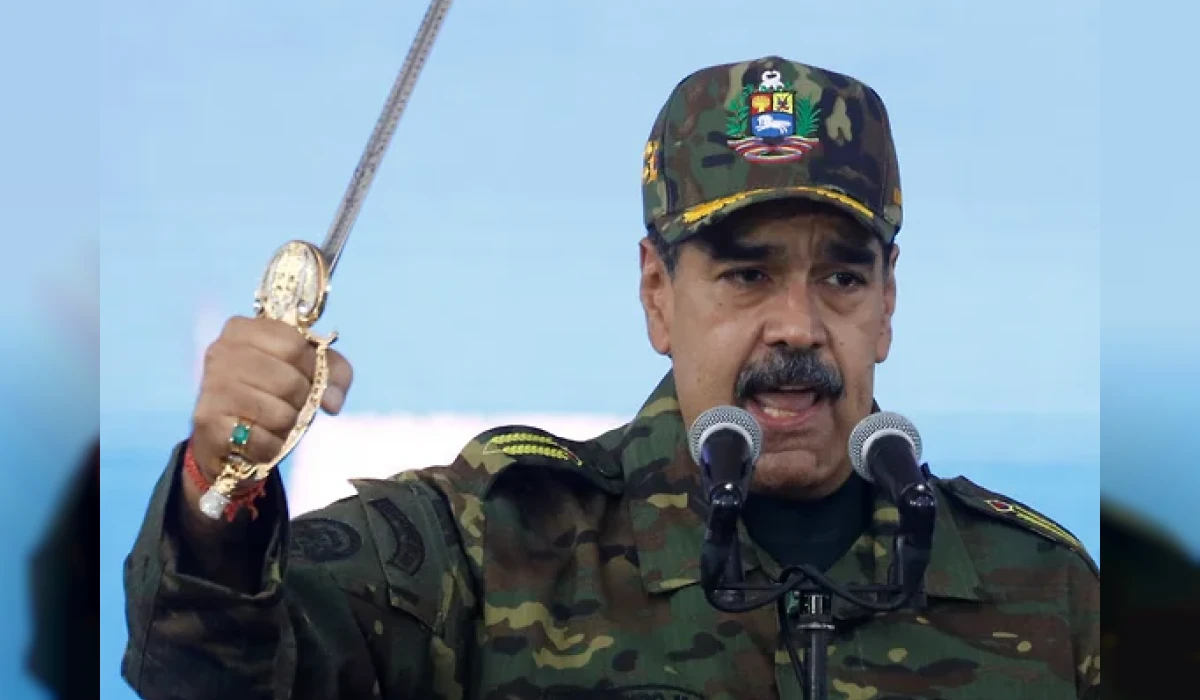 Мадуро элге кайрылуусунда өлкөнүн улуттук баатыры Симон Боливардын кылычын колуна кармап сүйлөдү.