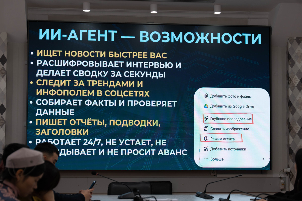 Биринчи күндүн сабактары журналистикага, андагы жасалма интеллектке, журналисттик иликтөөлөргө, фактчекингге жана подкаст жаратууга арналды. Спикерлер санариптештирүү шартында журналисттин ролу кандай өзгөрүп жатканын, материалдарды даярдоодо көмөктөшүүчү ЖИ инструменттери кандай экенин, иликтөөнүн структурасын кантип түзүү жана фейктер менен маалыматтык манипуляциялар доорунда маалыматты кантип текшерүү керектигин түшүндүрүштү.