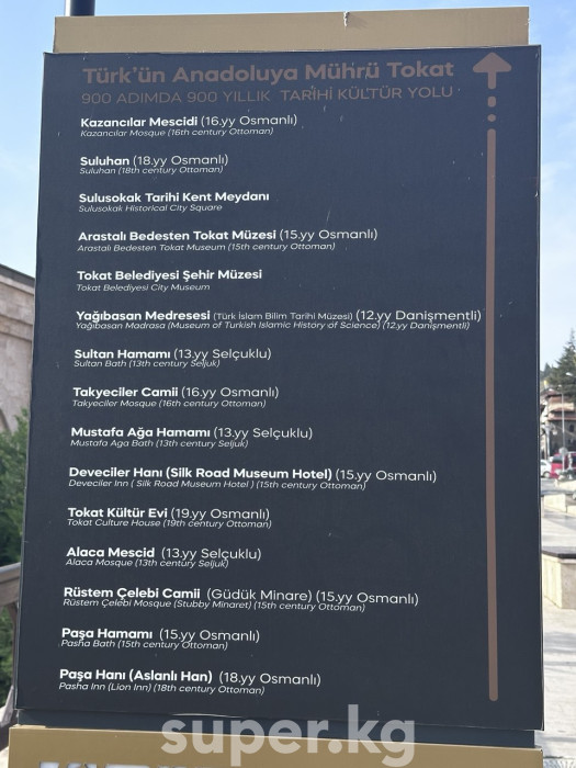 Демек, мен эми көпчүлүккө тааныш эмес Түркияны шаарларынан тааныштырам. Пресс-турдун биринчи күнүн Стамбулда өткөрсөк, экинчи күн бизди тарыхый жайларга жетеледи. Биз эми Токат шаарынан сүйлөйбүз. Стамбулдан Токатка чейин 814 чакырым жолду басып өтүшүңүз керек. Убакыт кенен болсо, поезд, такси же жеке авто менен барууга болот. Эгер эртерээк жетүүнү кааласаңыз, 2 саатка жетпеген убакытта учак менен барсаңыз болот. Аймактын өзүнчө аба майданы бар.