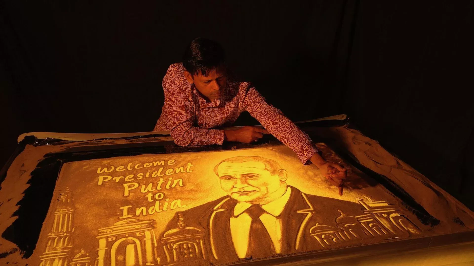 Владимир Путиндин Нью-Делиге болгон сапарына карата анын портретин кум менен тартты. Бул тууралуу видео India Today каналынын эфиринде көрсөтүлгөн.