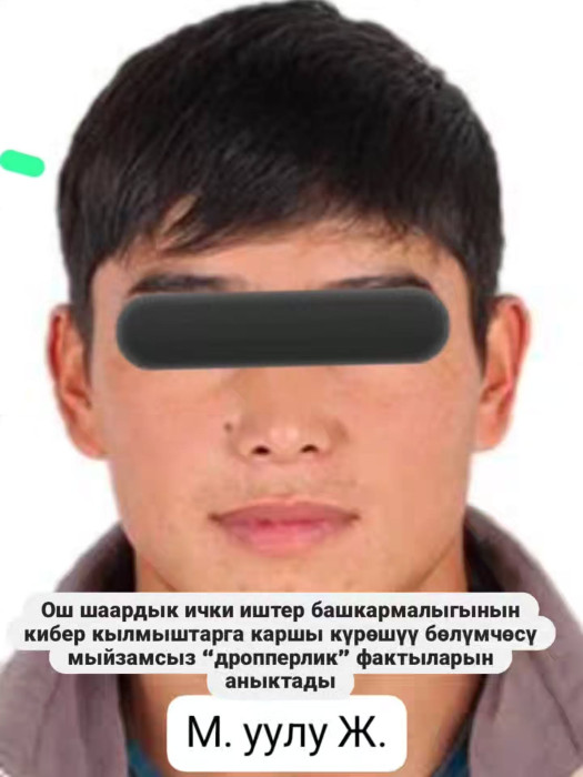 Ош шаардык ички иштер башкармалыгынын кибер кылмыштарга каршы күрөшүү бөлүмчөсү мыйзамсыз “дропперлик” фактыларын аныктады. Бул тууралуу мекеменин басма сөз кызматы билдирди.