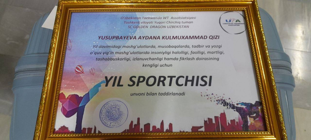 Өзбекстандын Ташкент шаарында этникалык кыргыз кыз, 10-класстын окуучусу Айдана Юсупбаева таэквондо боюнча "Жылдын спортчусу" наамына ээ болду. Бул тууралуу Паркент районундагы №33 кыргыз орто мектебинин директору Кубанычбек Жаматов социалдык тармагына бөлүштү.