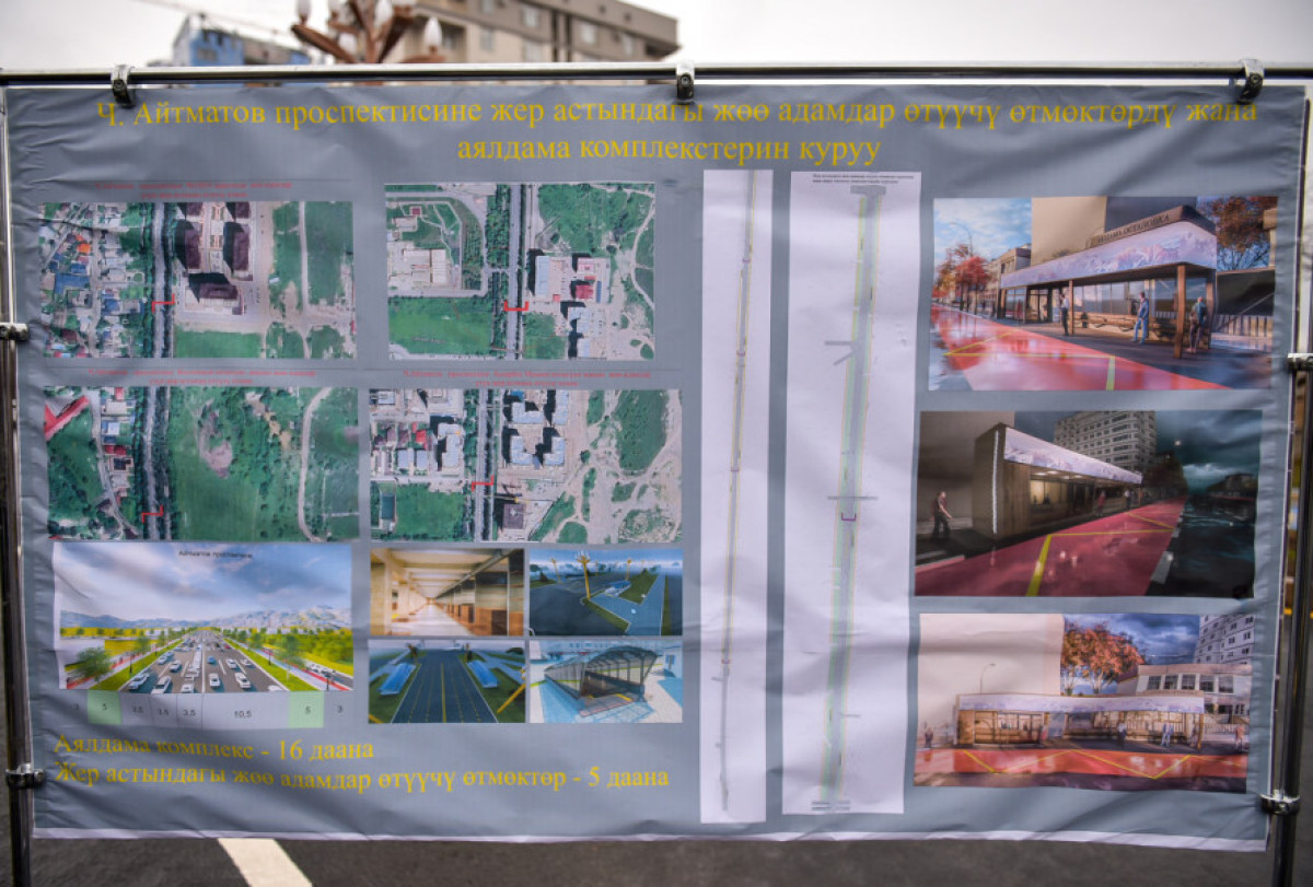 Бүгүн, 1-январда Бишкек шаарынын мэри Айбек Жунушалиев Чыңгыз Айтматов проспектинде жер алдындагы жөө өтмөктөрдү жана заманбап аялдама комплекстерин куруу иштерине старт берди.