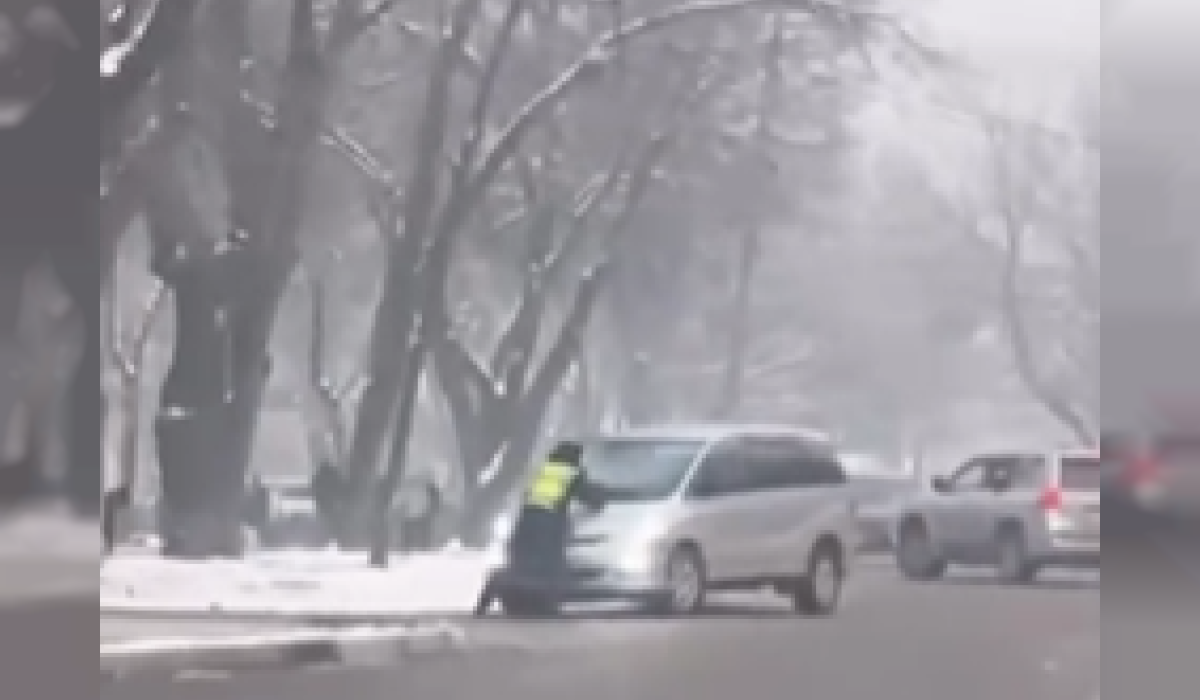 Бишкекте мас айдоочу кайгуул кызматкерин унаасына сүйрөп кетти (видео)