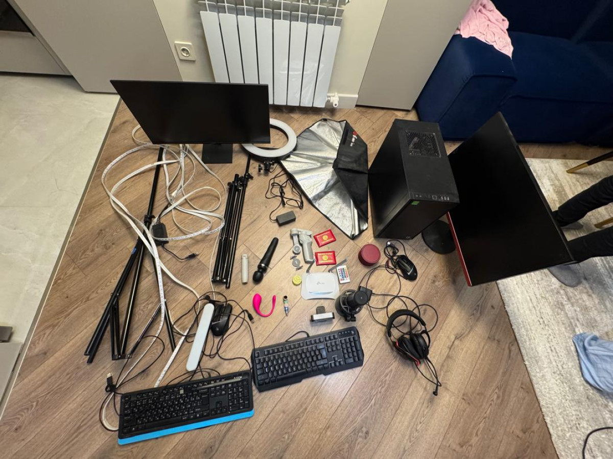 Кармалгандардын бардык турак жай даректеринде дароо тинтүү иштери жүргүзүлүп, веб-камералар, жарык берүүчү, компьютердик жана башка техникалык жабдуулар, эротикалык кийим жана атрибуттар, сексуалдык мүнөздөгү онлайн берүүлөрдү жүргүзүүгө арналган буюмдар табылды.