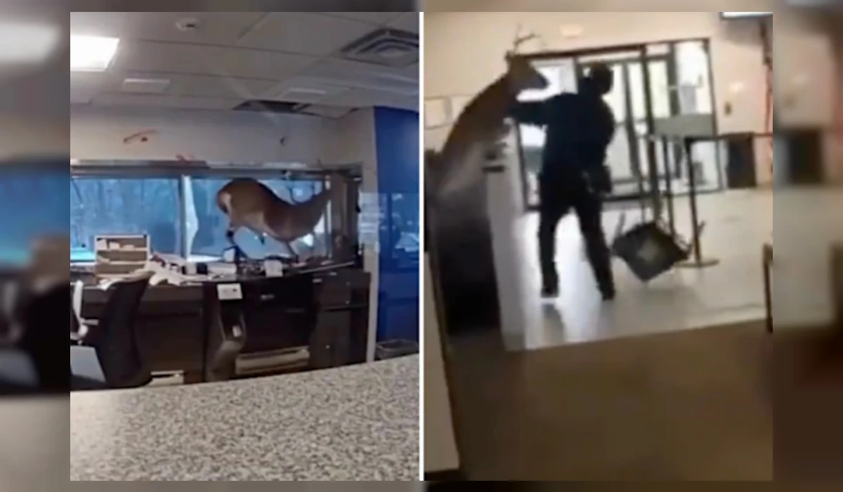 АКШнын Нью-Йорк шаарындагы банкка бугу киргенин чет элдик басылмалар жазышты.