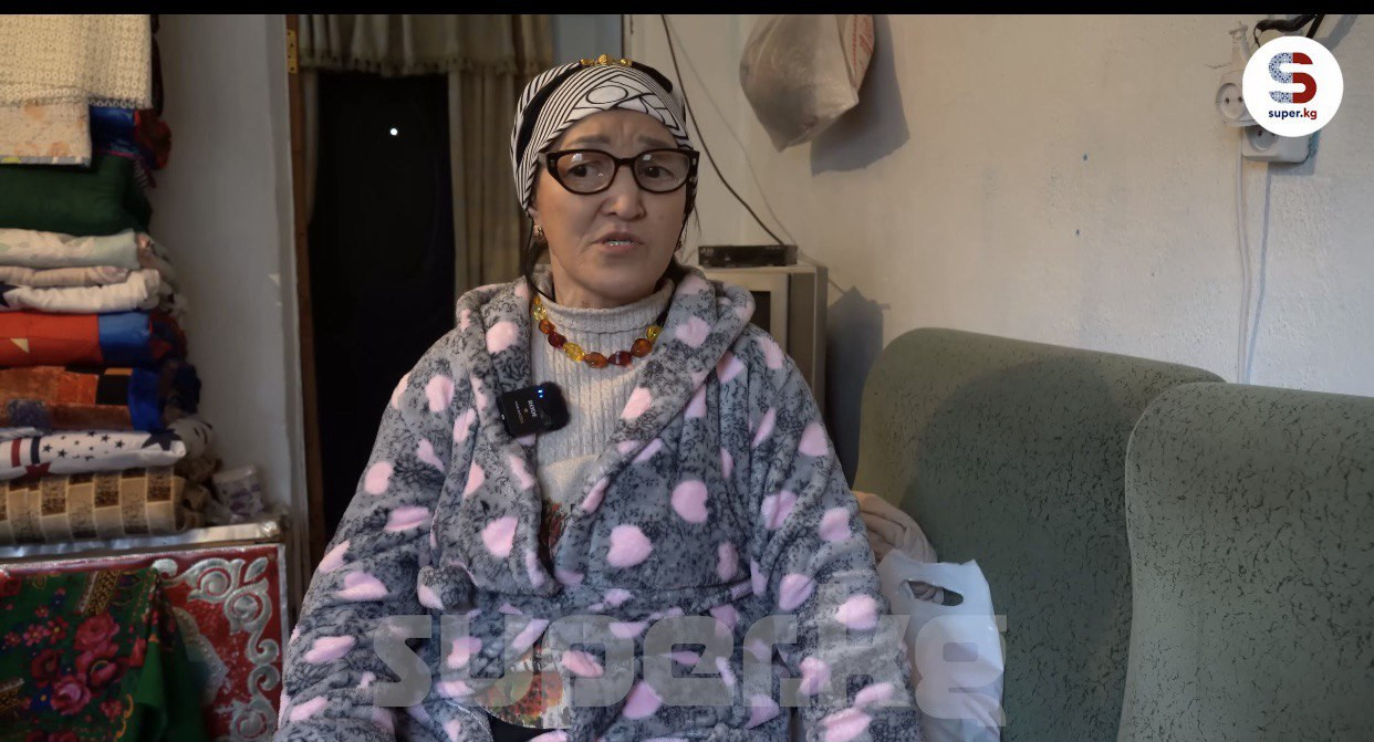 "Эч жакка чыга албай калдым. Үйдү кыздарымдын кыздары келип жыйнап беришет. Бул батирге 15 миң сом төлөйбүз. Жылуулук менен кошкондо 18 миң сом болуп калат. Эми болсо электр жарыгынын акчасын төлөй албай отурабыз. Беш айдан бери ушул батирде турабыз",- дейт Айшакан апа.