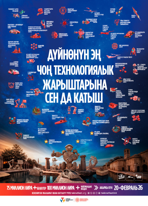 Фестивалдын кубанычын өлкөнүн ар бир бурчуна жеткирген жана “алгачкылар фестивалы” болгон TEKNOFEST технологиялык жарыштарына катышуу үчүн www.teknofest.org дарегине кирип каттала аласыз.