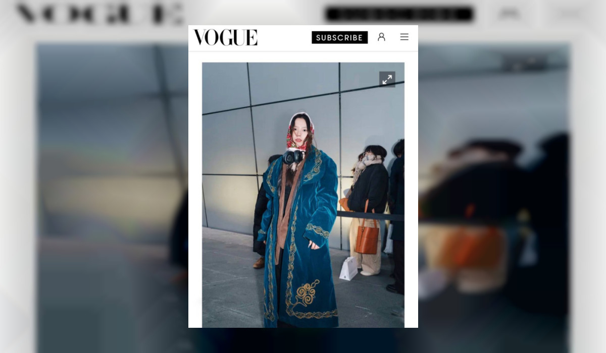 Улуттук чапан кийип, жоолук салынган кыргызстандык моделдин сүрөтү дүйнөлүк мода журналы болгон "Vogue" басылмасына жарыяланды. Бул тууралуу модель Шадия Исаева өзүнүн Instagram баракчасында билдирди.