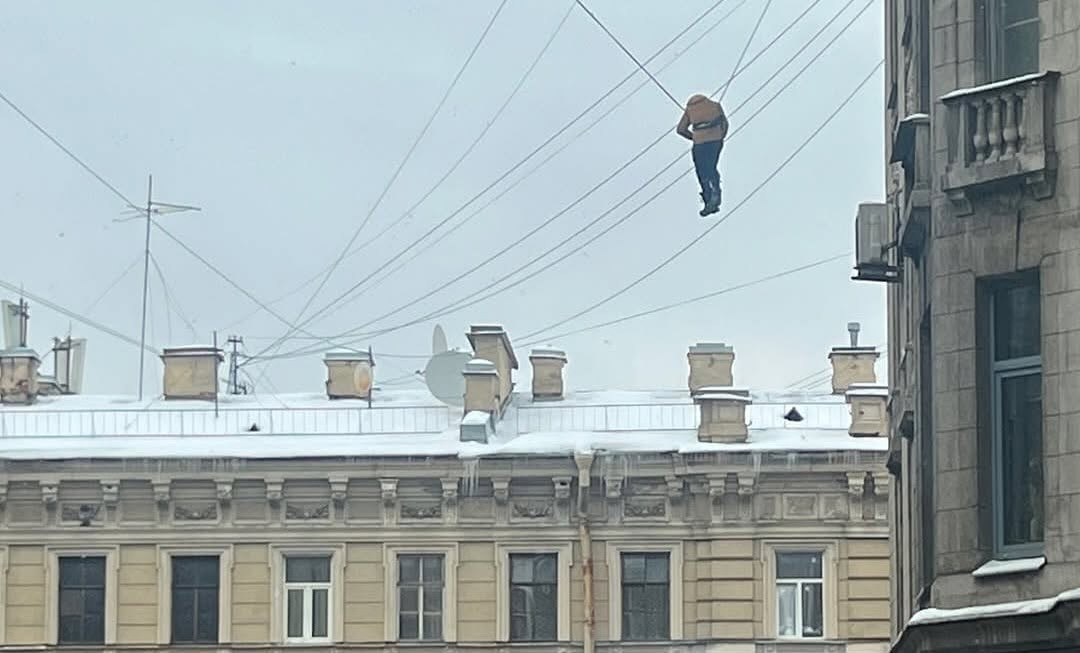 Санкт-Петербург шаарында көп кабаттуу үйлөрдүн биринин чатырында кар күрөп жатып кулап, электр зымдарына илинип калган жаран куткарылды. Бул тууралуу орусиялык басылмалар жазышууда.