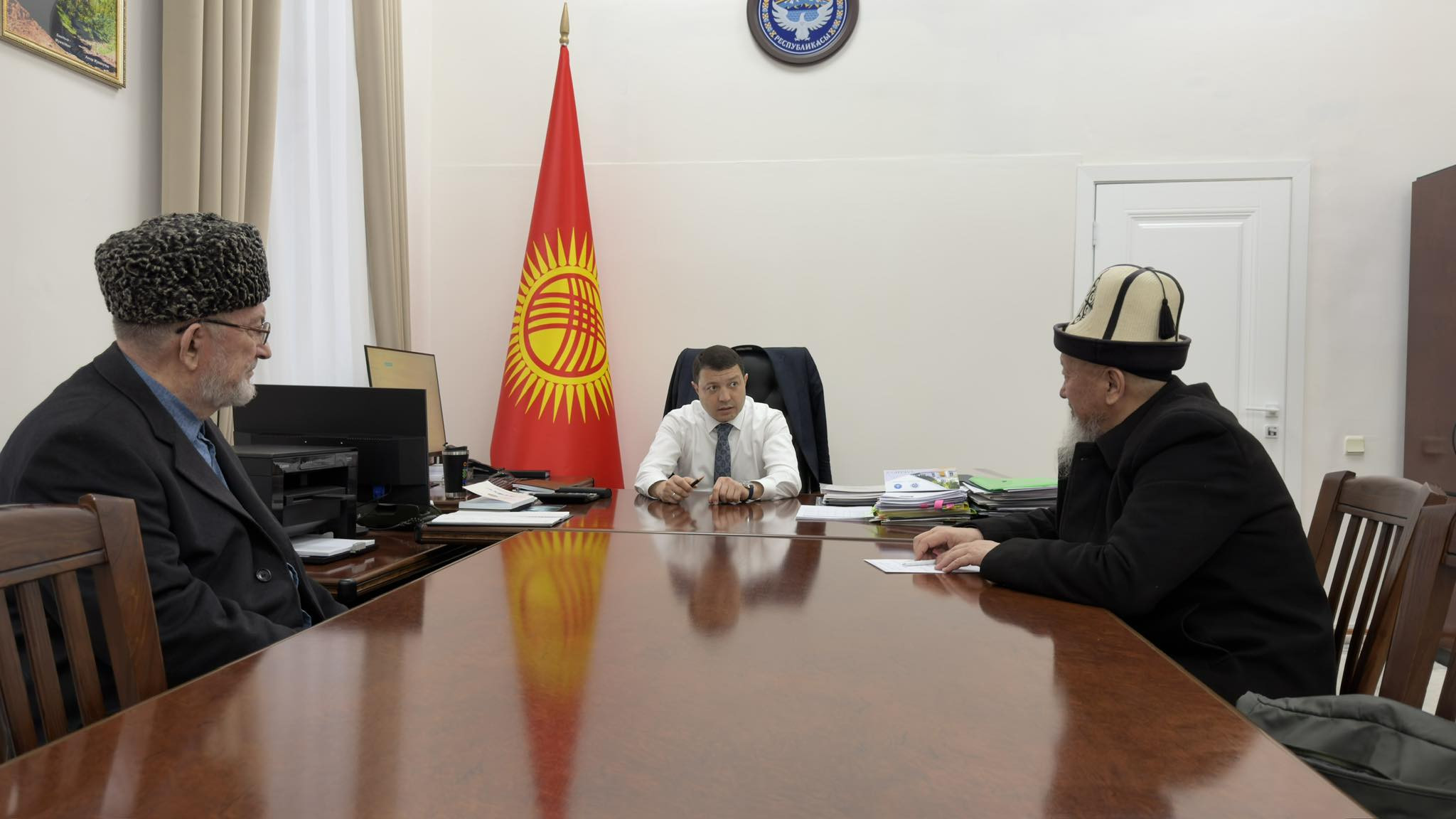 Маданият, маалымат жана жаштар саясаты министрлигинен билдиришкендей, жолугушууда президент Садыр Жапаров демилгелеген “Улуттук дем — дүйнөлүк бийиктик” концепциясынын алкагында улуттук баалуулуктарды сактоо, жаштарды руханий-адеп-ахлактык жактан тарбиялоо жана коомдук тарбия иштерин күчөтүү маселелери талкууланды.
