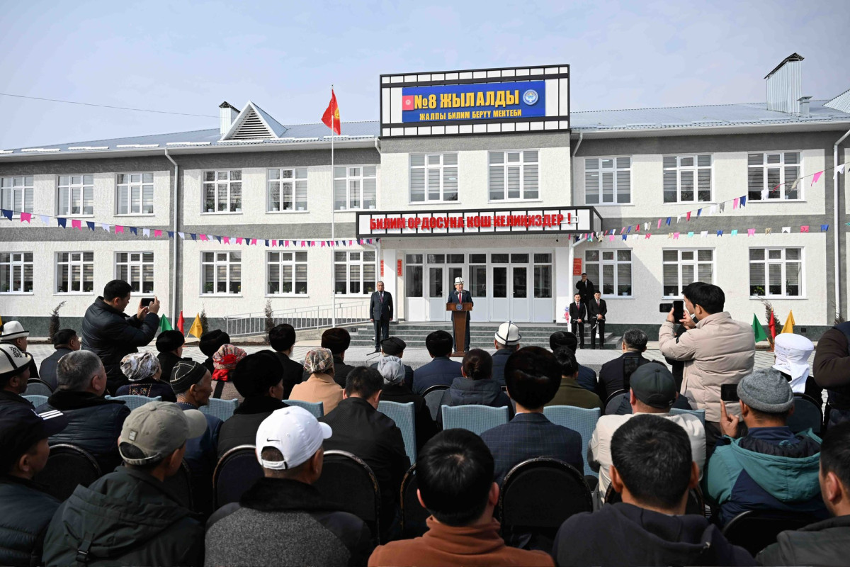 “Өзүңүздөргө белгилүү болгондой президентибиз Садыр Жапаровдун жүргүзүп жаткан саясатынын артыкчылыктуу багыттарынын бири окутуунун сапатын арттыруу жана бардык шарттарды түзүү болуп саналат. Бүгүнкү күндө республикада мамлекет тарабынан балдар үчүн камкордуктар күчөтүлүп, бардык шарттары бар заманбап көптөгөн жаңы мектептер курулуп, ишке берилүүдө”,- деди Касымалиев.