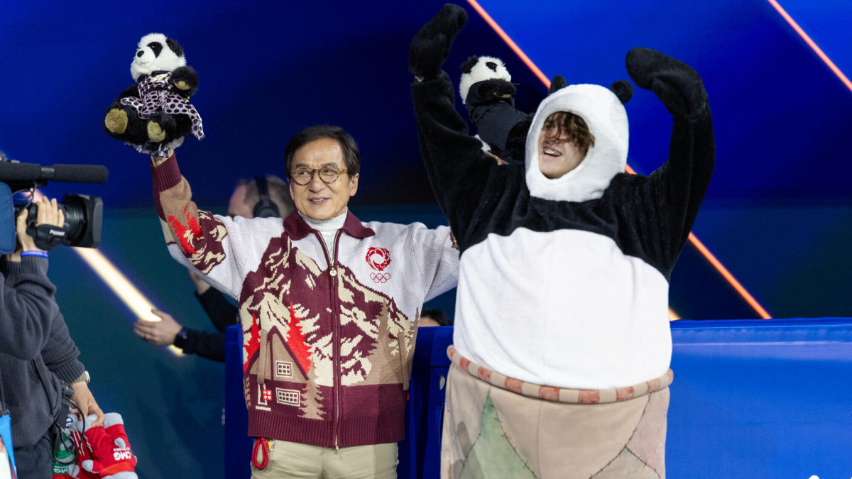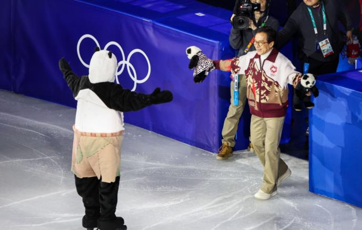 Италияда өтүп жаткан Кышкы Олимпиада оюндарынын алкагында өткөн көрсөтмө номерден кийин белгилүү актёр Жеки Чан муз үстүнө чыгып, казакстандык Олимпиада чемпиону Михаил Шайдоровго эки жумшак панда белек кылды.
