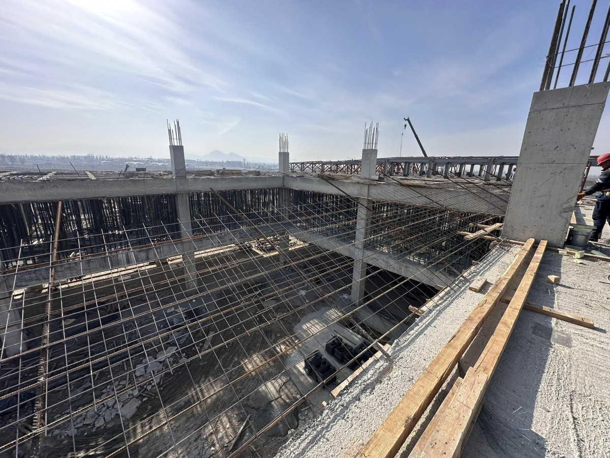 "Бүгүнкү күнгө карата монолиттик иштер 95 пайызга аткарылып, инженердик тармактарды, анын ичинде электр менен камсыздоо, желдетүү, канализация, суу түтүктөрү жана өрт өчүрүүчү суу түтүктөрүн монтаждоо боюнча жертөлө бөлүгүндөгү иштер 80 пайызга бүткөрүлдү. Ал эми биринчи кабаттагы иштер долбоордук-сметалык документтерге киргизилип жаткан өзгөртүүлөргө байланыштуу убактылуу токтоп турат",- деп белгиленди маалыматта.
