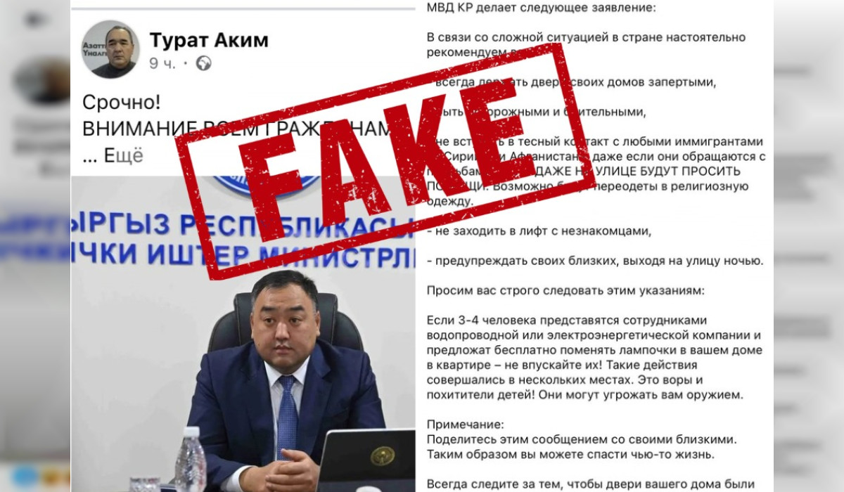 Ички иштер министрлиги социалдык тармактарга фейк маалыматтар тарап жатканын билдирди. Бул тууралуу ИИМдин басма сөз кызматы кабарлады.