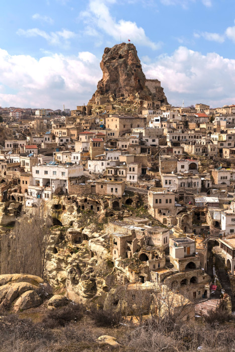 Шаардын борборунда Хетт дооруна таандык деп эсептелген Ортахисар чеби көтөрүлүп турат. Бүгүнкү күндө бул чеп аймактагы эң бийик байкоо чекиттеринин бири болуп саналат жана Каппадокиянын өзгөчө пейзажына укмуш панорамалык көрүнүш тартуулайт. Аскага оюлуп жасалган бул чепте үңкүрлөрдүн, көгүчкөн уяларынын жана лабиринт сыяктуу туннелдердин татаал системасы бар. Ошондуктан ал көп учурда “дүйнөдөгү эң алгачкы көп кабаттуу конуштардын бири” катары да аталат.