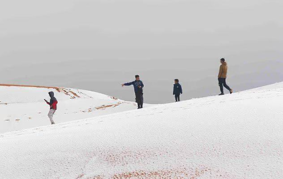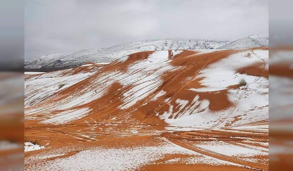 Сахара чөлүнө кар жаады. Алжирдеги жаан-чачын кызгылт сары кум дөбөлөрүн ак түскө боёп, Айн-Сефрада абанын температурасы нөлдөн төмөн түштү.