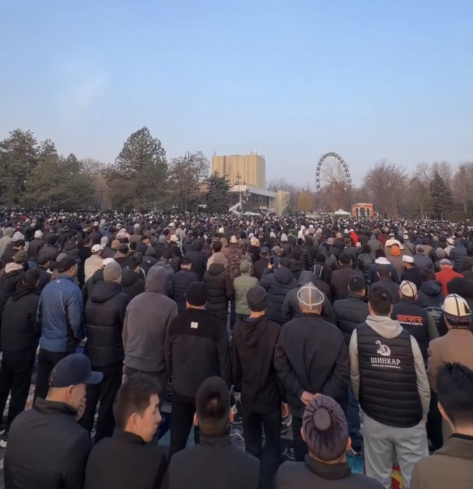 Бүгүн, 20-мартта Бишкектеги эски аянттагы Орозо айт намазына миңдеген адам катышты.