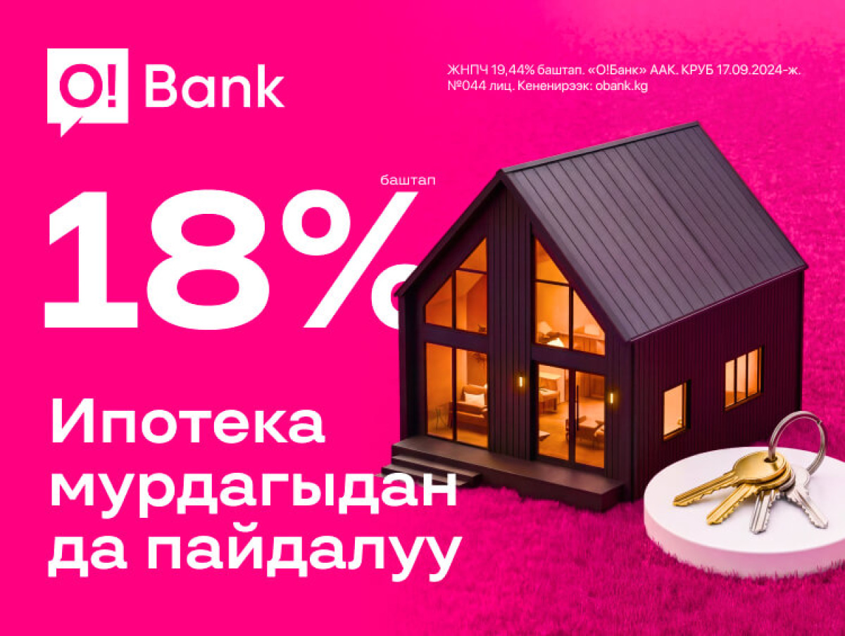Эми үй шартыңызды жакшыртуу жеңилирээк болууда — O!Bank’тан ипотеканы пайдалуу шарттарда тариздеп, керектүү каржылоону алып, пландарыңызды көп кыйналбастан ишке ашырсаңыз болот.