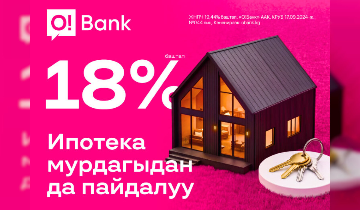 ЖНПЧ 19,44%дан баштап. Толук маалымат шилтемеде. «О!Банк» ААК. КРУБдун 17.09.2024-жылдагы №044 лицензиясы.