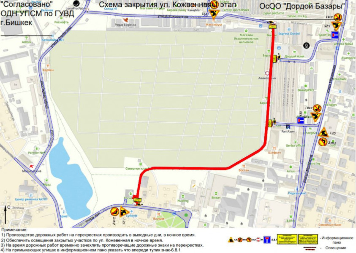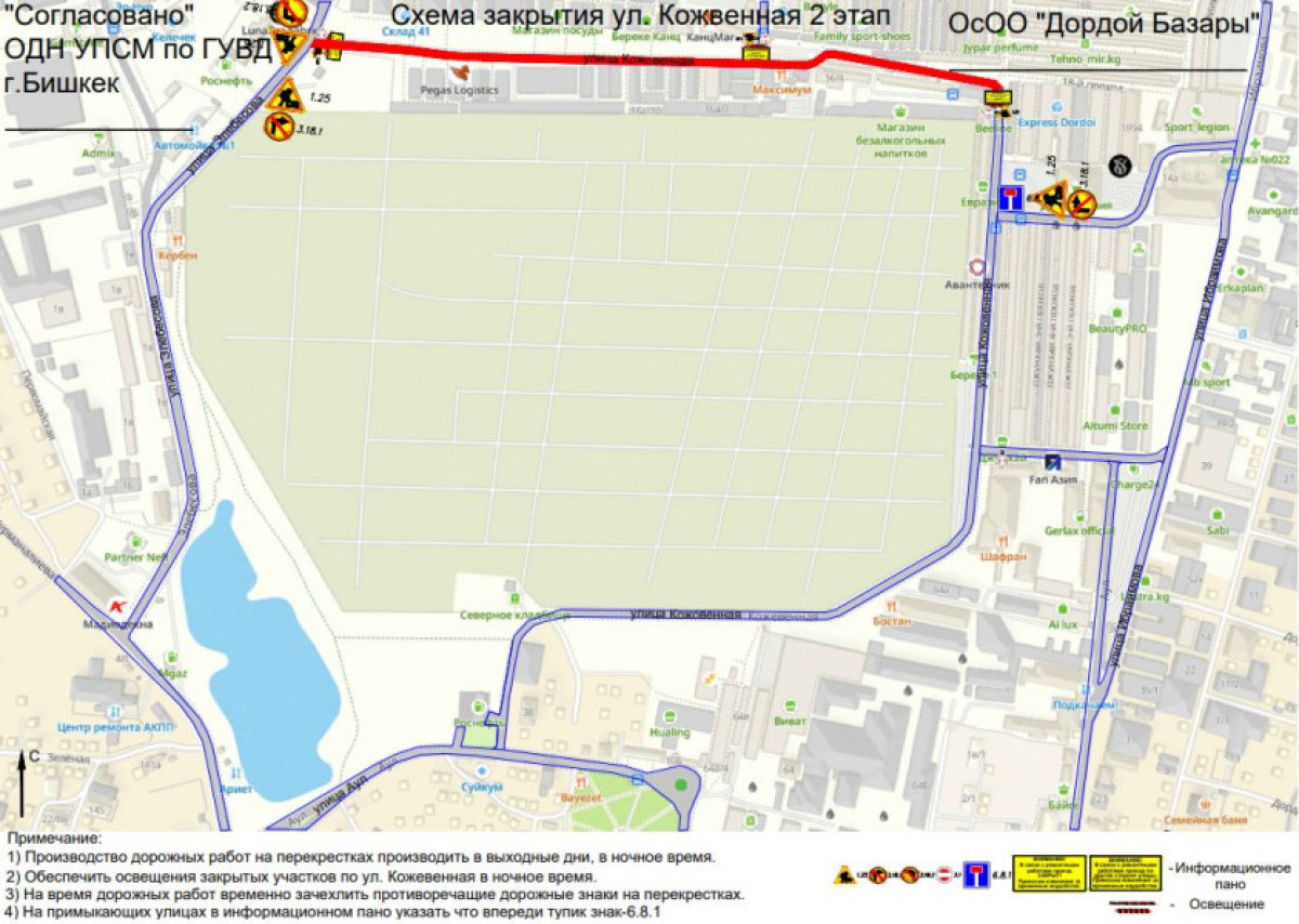 Маалым болгондой, оңдоо иштери эки этап менен жүргүзүлөт. Биринчи этапта 2026-жылдын 1-апрелинен тартып Кожевенная көчөсүнүн Аул көчөсүнөн Ибраимов көчөсүнө чейинки бөлүгү унаа кыймылы үчүн жабылат. Экинчи этапта Ибраимов көчөсүнөн Элебесов көчөсүнө чейинки бөлүгүн жабуу пландалууда.