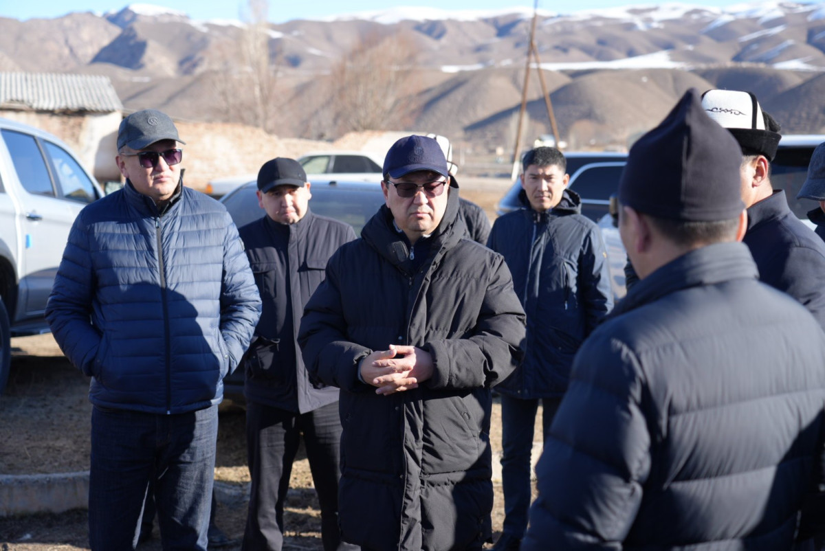 Суу ресурстары, айыл чарба жана кайра иштетүү өнөр жайы министри Эрлист Акунбеков Нарын облусунун Эмгекчил айылындагы мал чарбаларды кыдырып, эпизоотиялык абал менен таанышты.