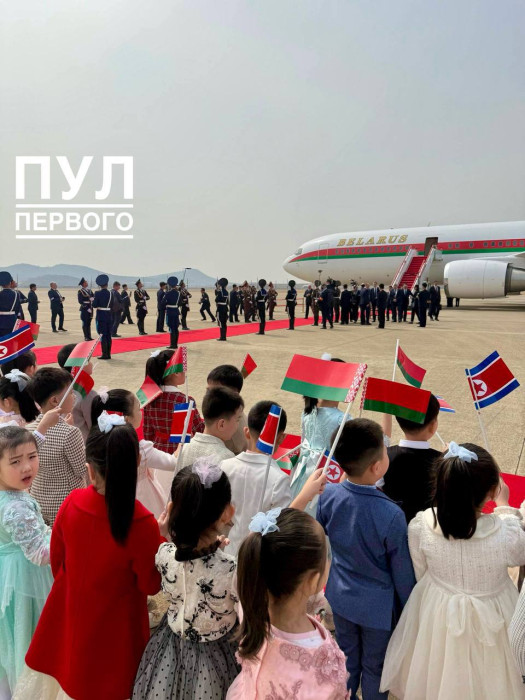 Аэропорттон Беларустун лидерин Түндүк Кореянын биринчи вице-премьер-министри Ким Ток Хун жана Беларустун тышкы иштер министри Максим Рыженков тосуп алышты.