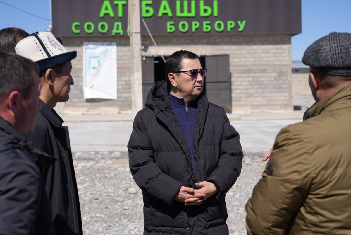 Айыл чарба министри Эрлист Акунбеков Нарын облусуна караштуу Дайракулов айыл өкмөтүнүн Казан-Куйган айылында ачылышы пландалып жаткан социалдык дүкөндүн долбоору менен таанышты.