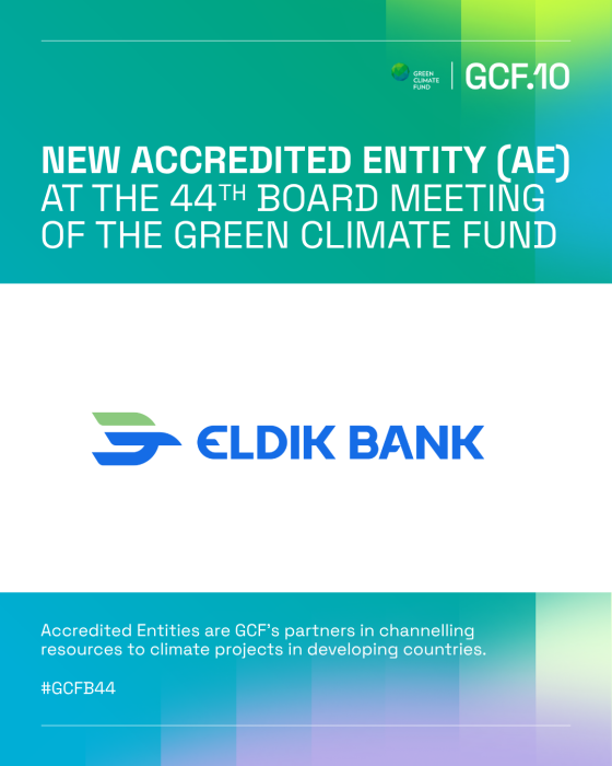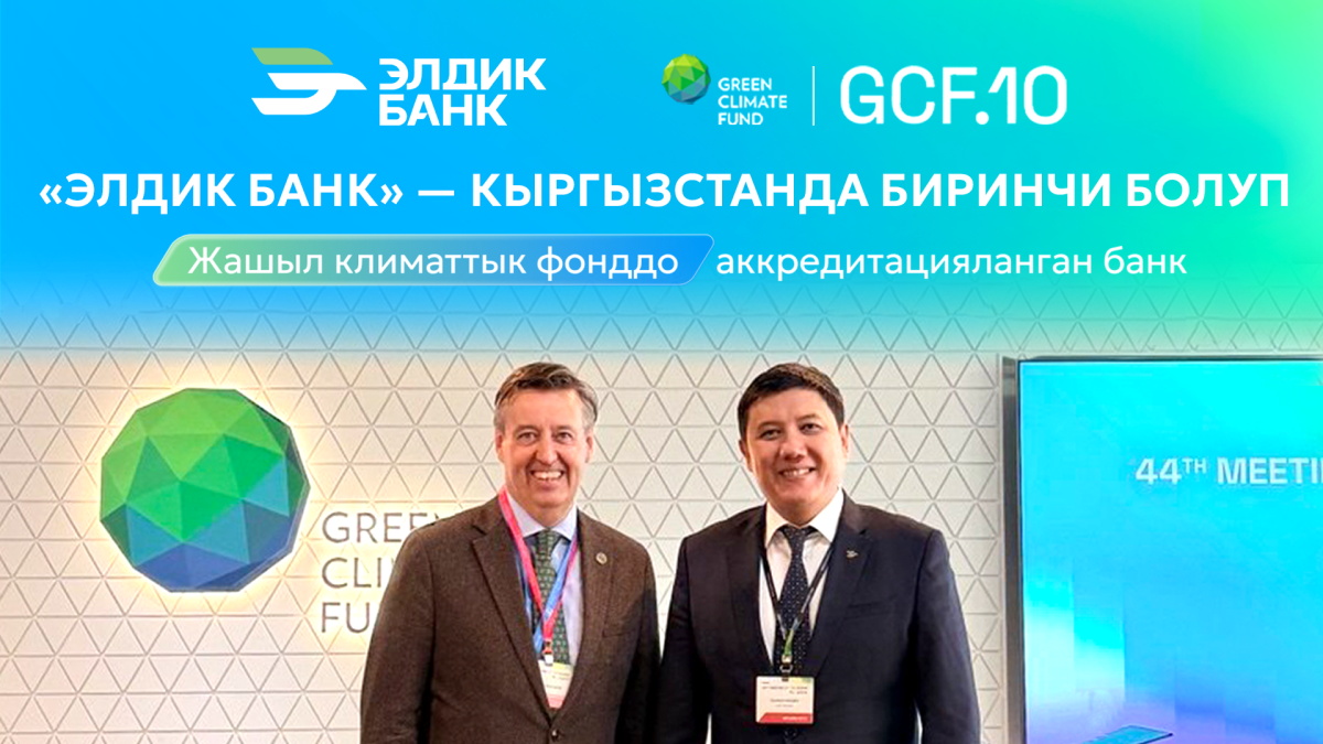 «Элдик Банк» ААК Кыргыз Республикасынын Жашыл климаттык фонддо (Green Climate Fund, GCF) аккредитация алган биринчи каржы институту болду. Бул климаттын өзгөрүшүнө каршы күрөшүү багытындагы долбоорлорду каржылоочу дүйнөдөгү эң ири глобалдык фонд болуп саналат.