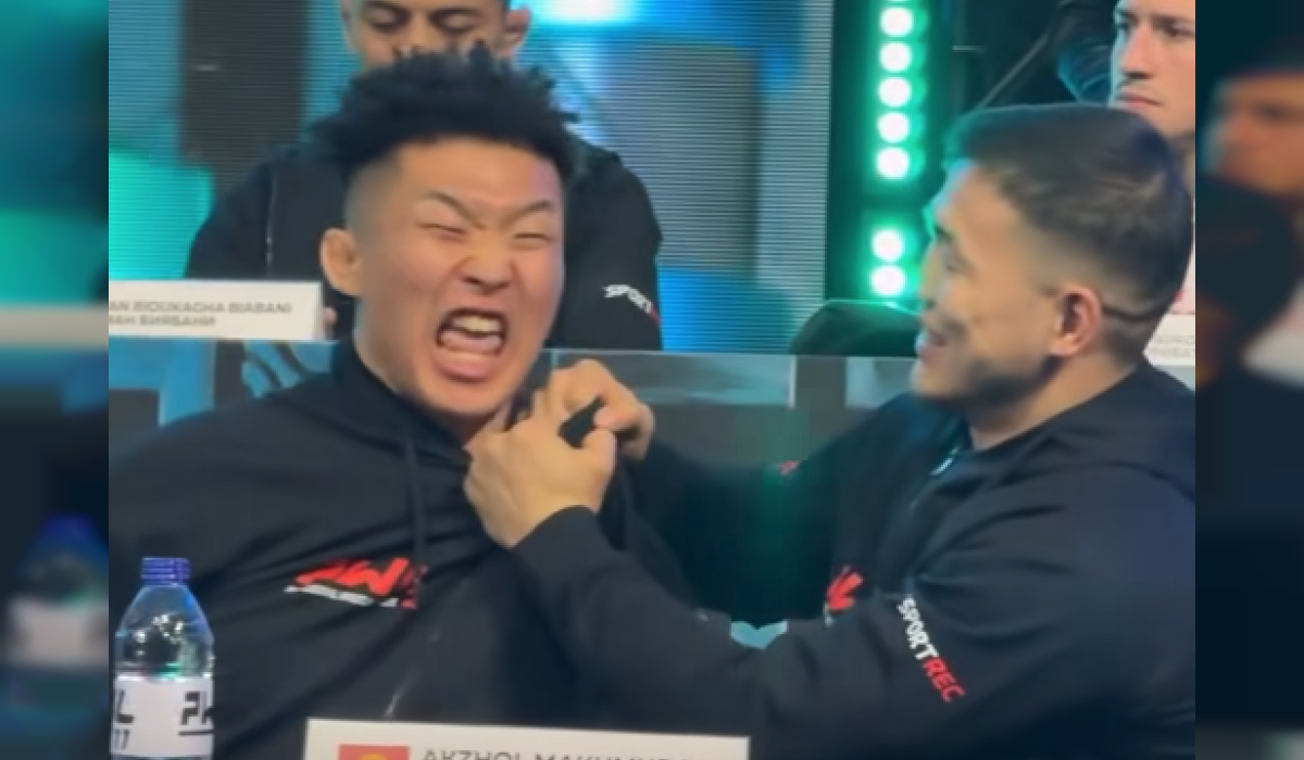 Кыргыз балбаны Акжол Махмудов япониялык атаандашы Нао Кусаканы тамашага салды. Алар Ташкентте мелдештин алдында өткөн жыйында отурган жерден бири-бирин жакадан алып, тамашалап кыр көрсөтүштү.